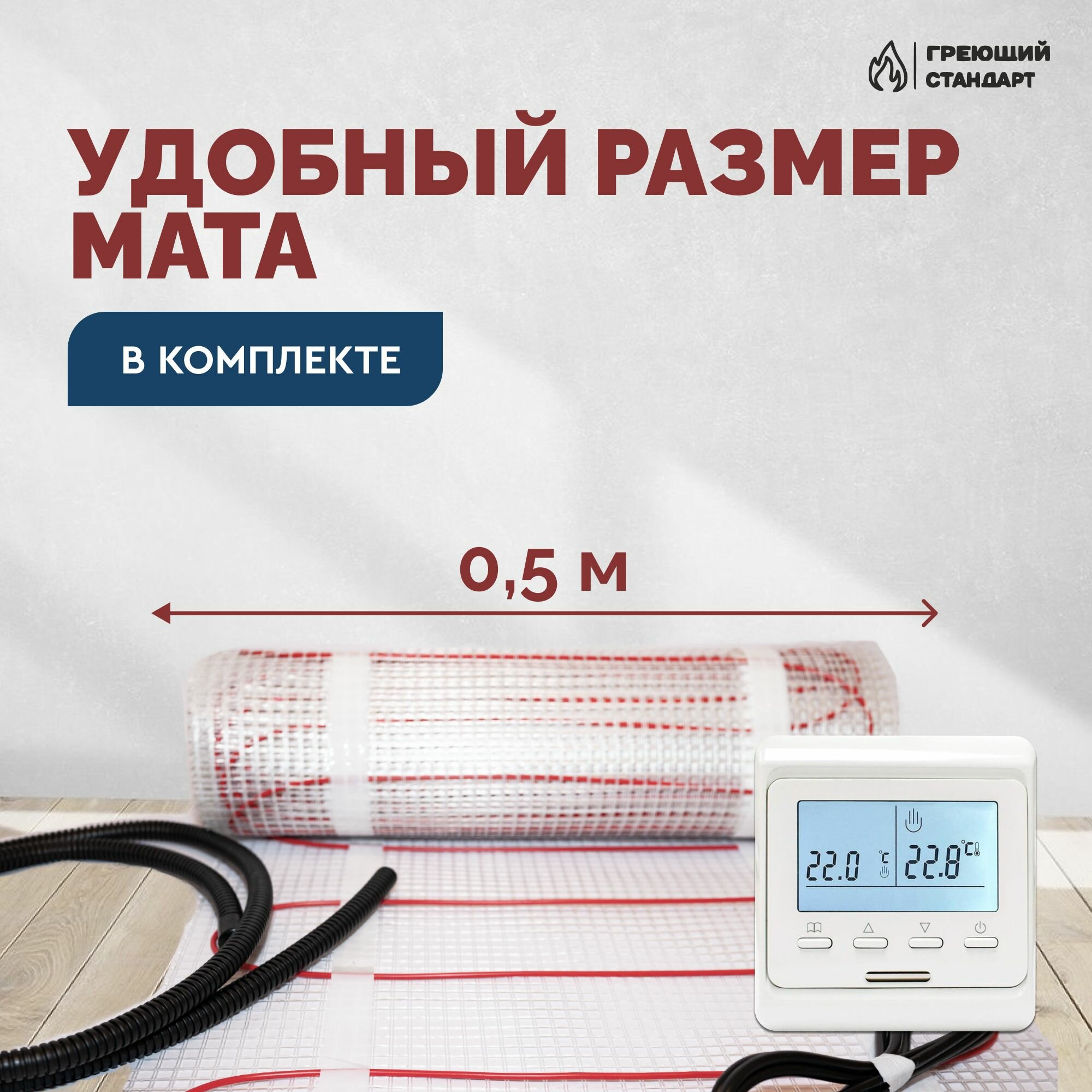 Теплый пол электрический 0,5 м2 150 Вт под плитку с электронным терморегулятором Е51 (нагревательный мат)