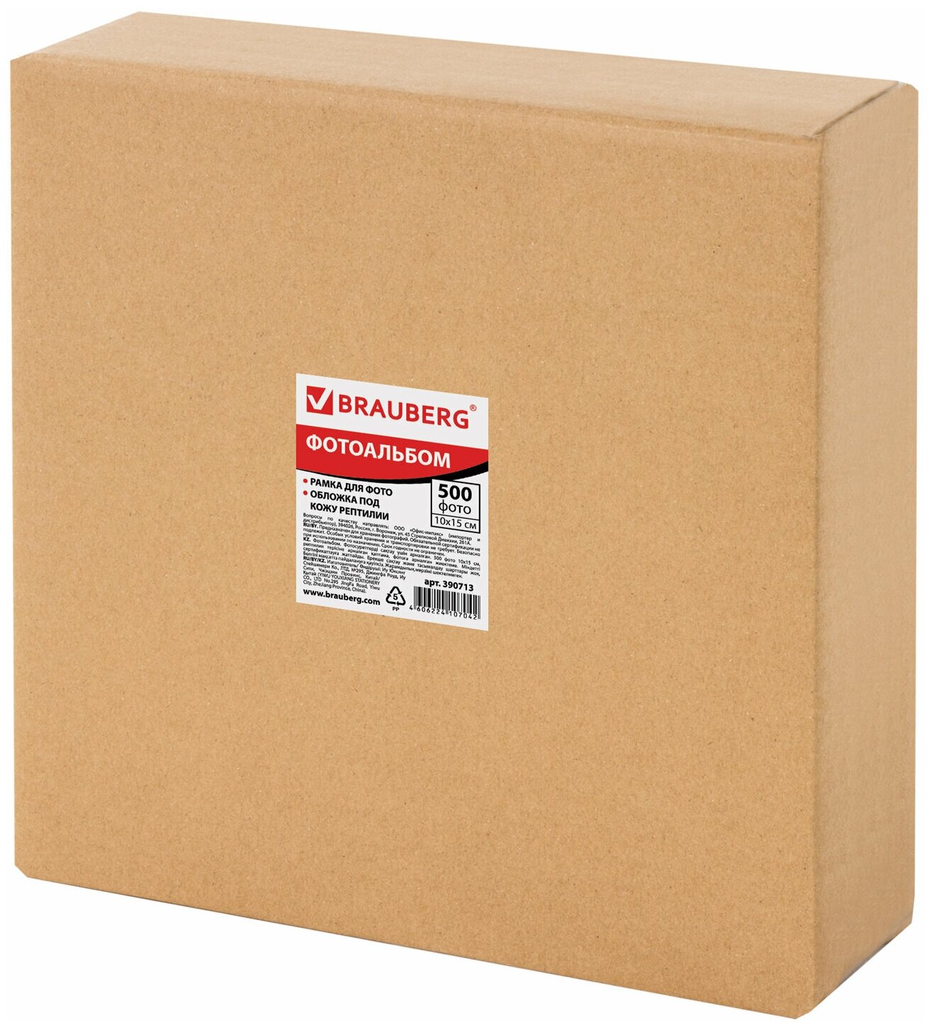 Фотоальбом BRAUBERG на 500 фото 10х15 см, индивидуальный бокс, обложка под кожу рептилии,, 1 шт