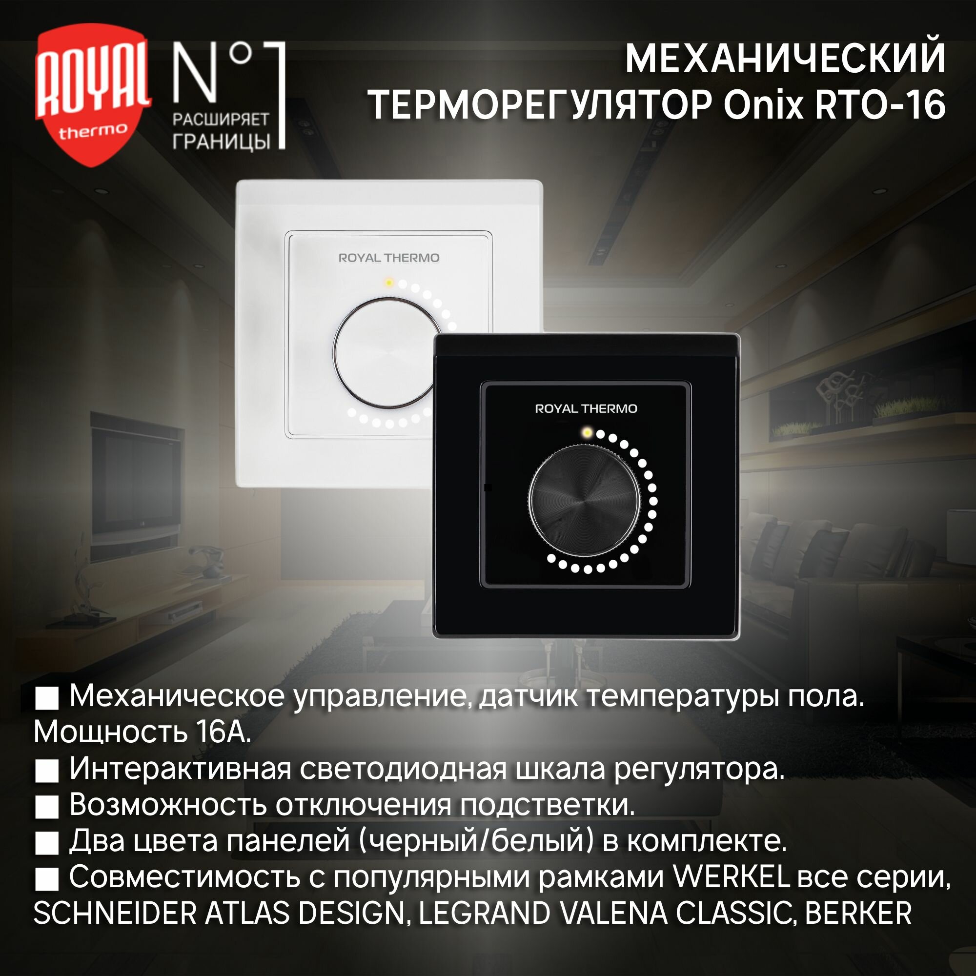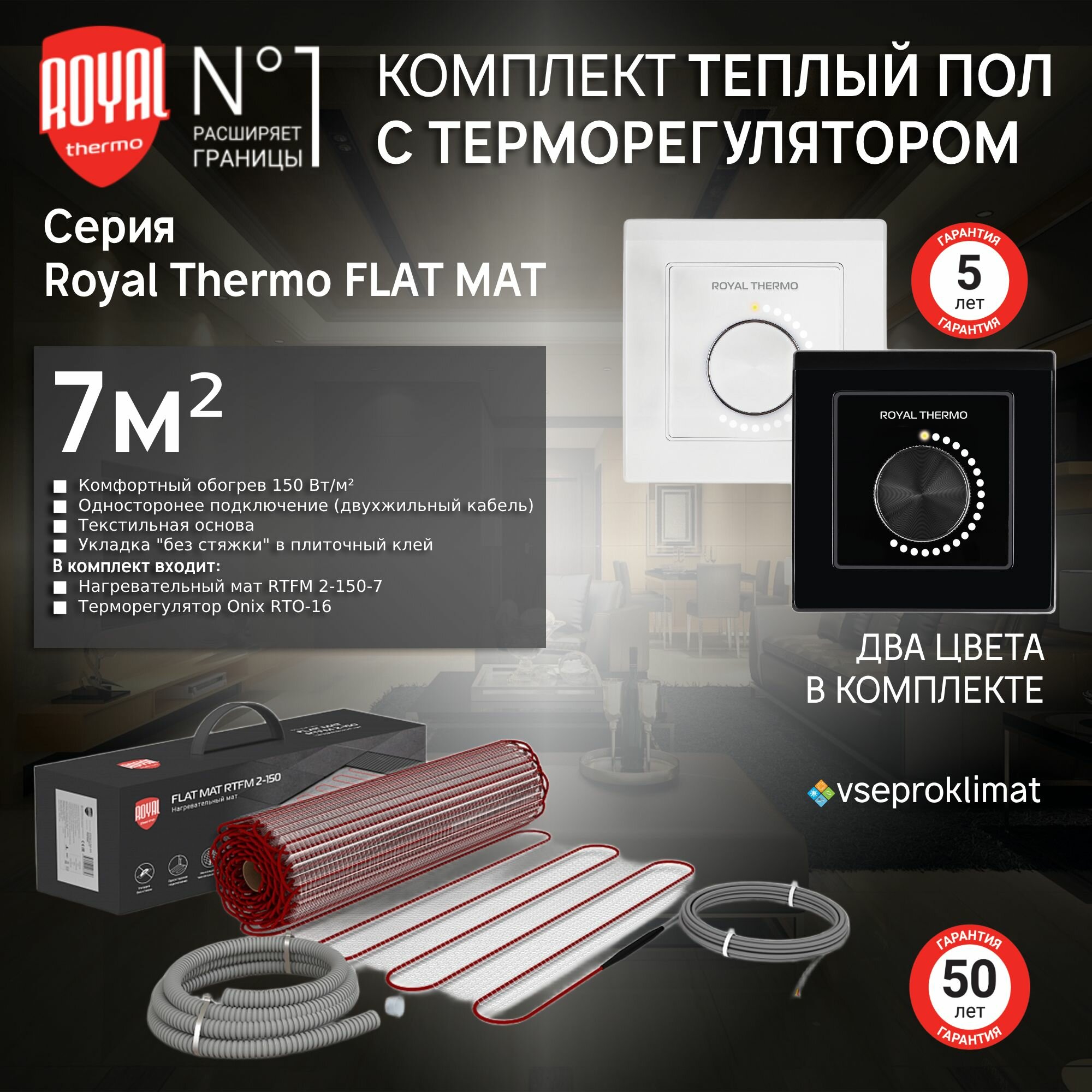 Купить Теплый пол электрический мат под плитку Royal Thermo RTFM 2-150-7 с механическим терморегулятором Onix RTO-16, комплект