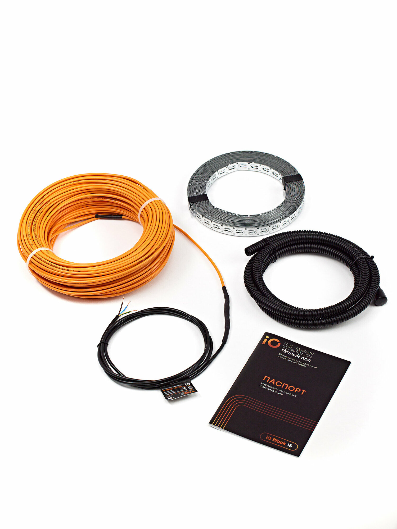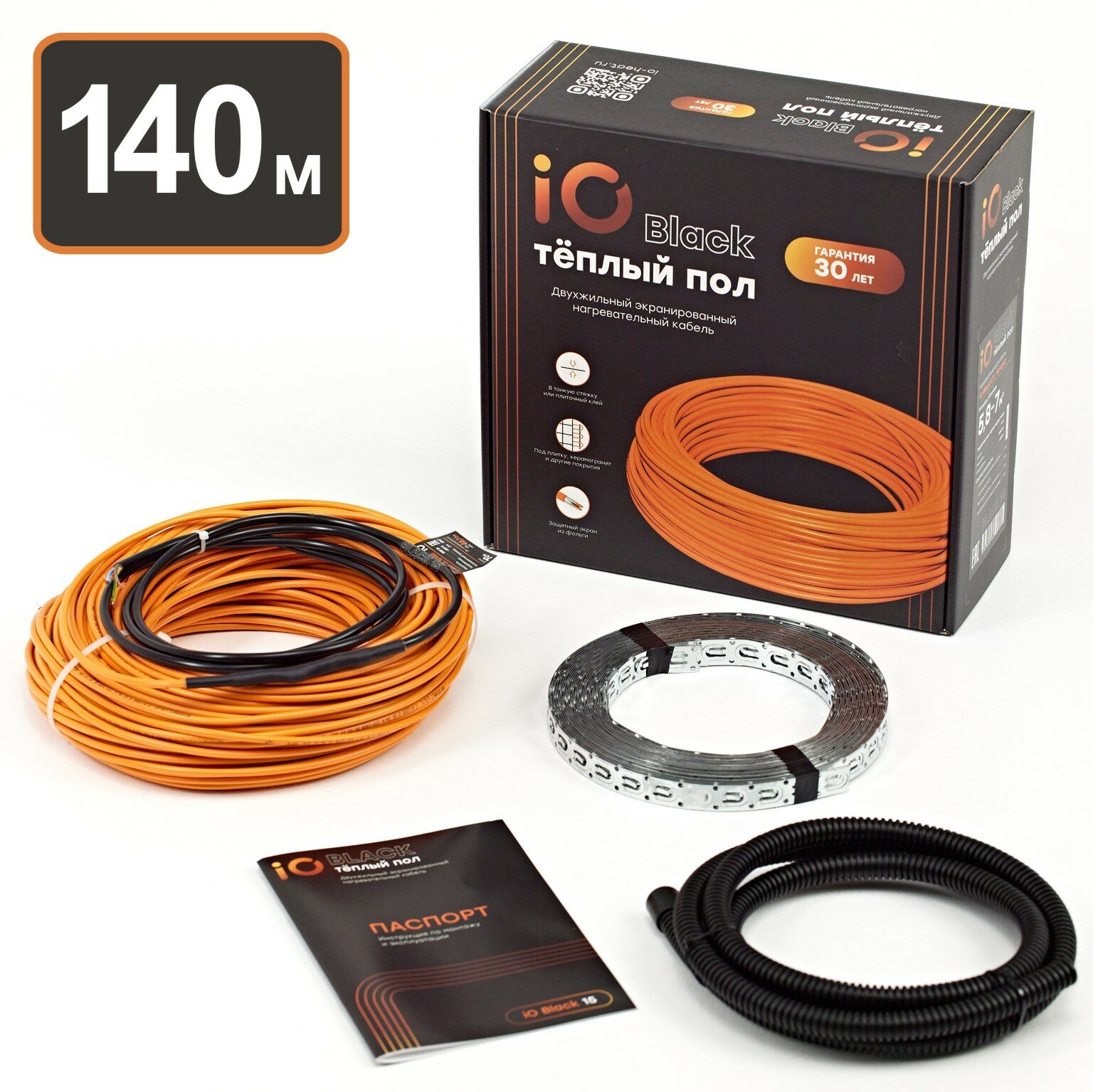 Кабельный тёплый пол электрический в стяжку iO Black 60м 900Вт под плитку, кварцвинил, ламинат, линолеум
