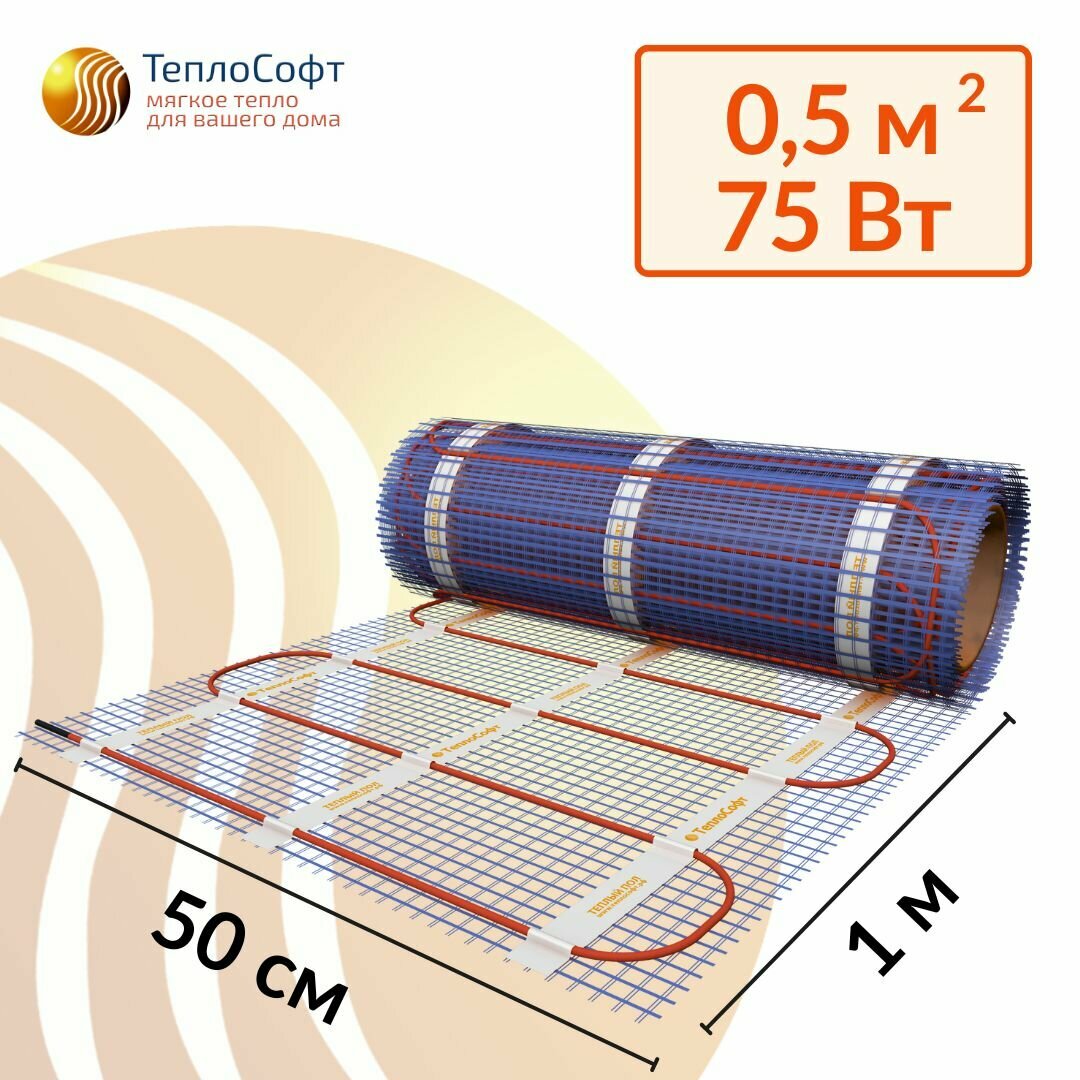 Теплый пол под плитку нагревательный мат Теплософт Профи 0,5 м2 75Вт с терморегулятором