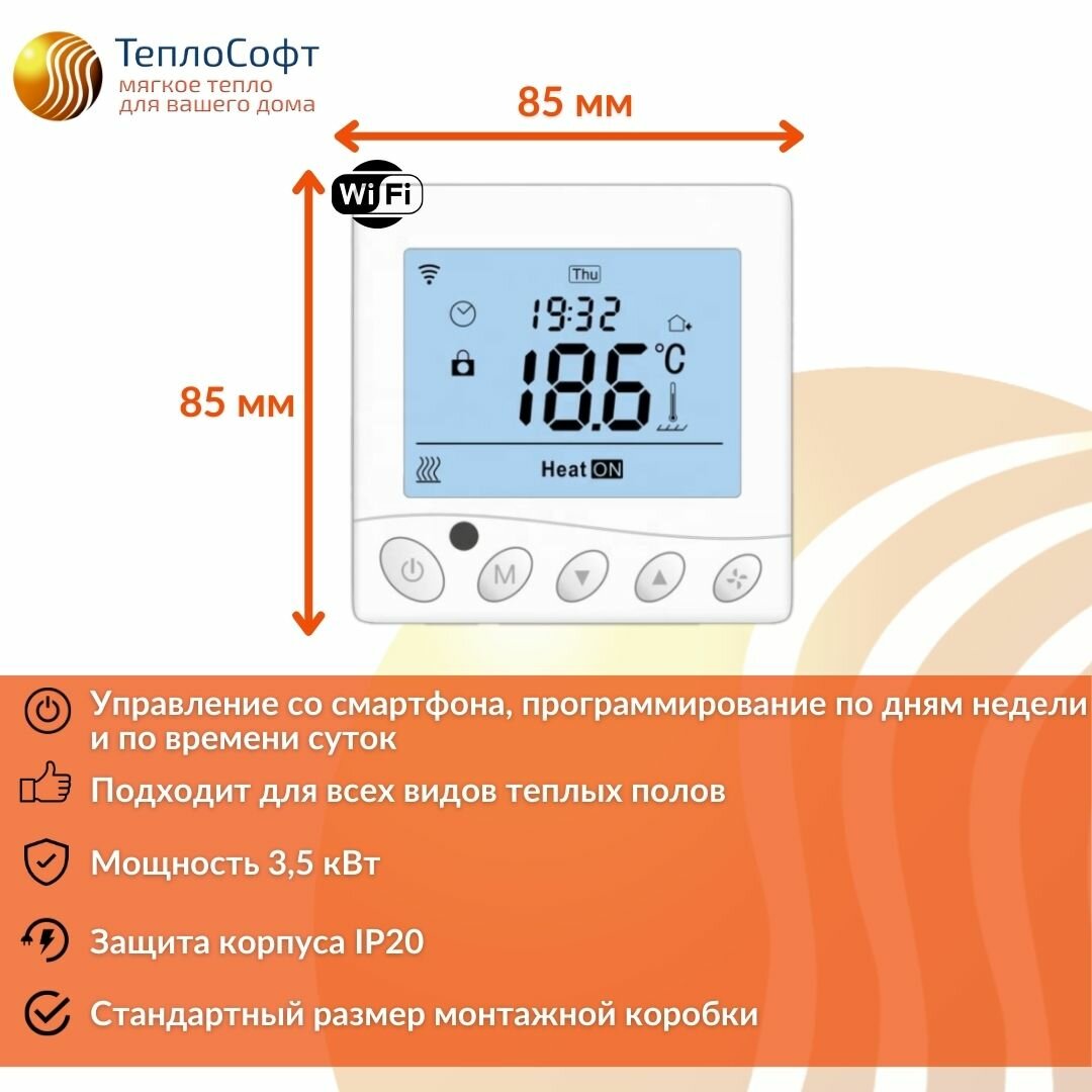 Теплый пол электрический под плитку 3,5 м2 / Нагревательный мат Теплософт Профи с Wi-Fi терморегулятором
