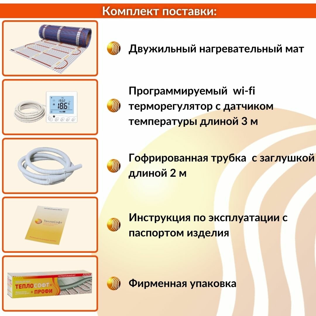 Теплый пол электрический под плитку 14 м2 / Нагревательный мат Теплософт Профи с Wi-Fi терморегулятором