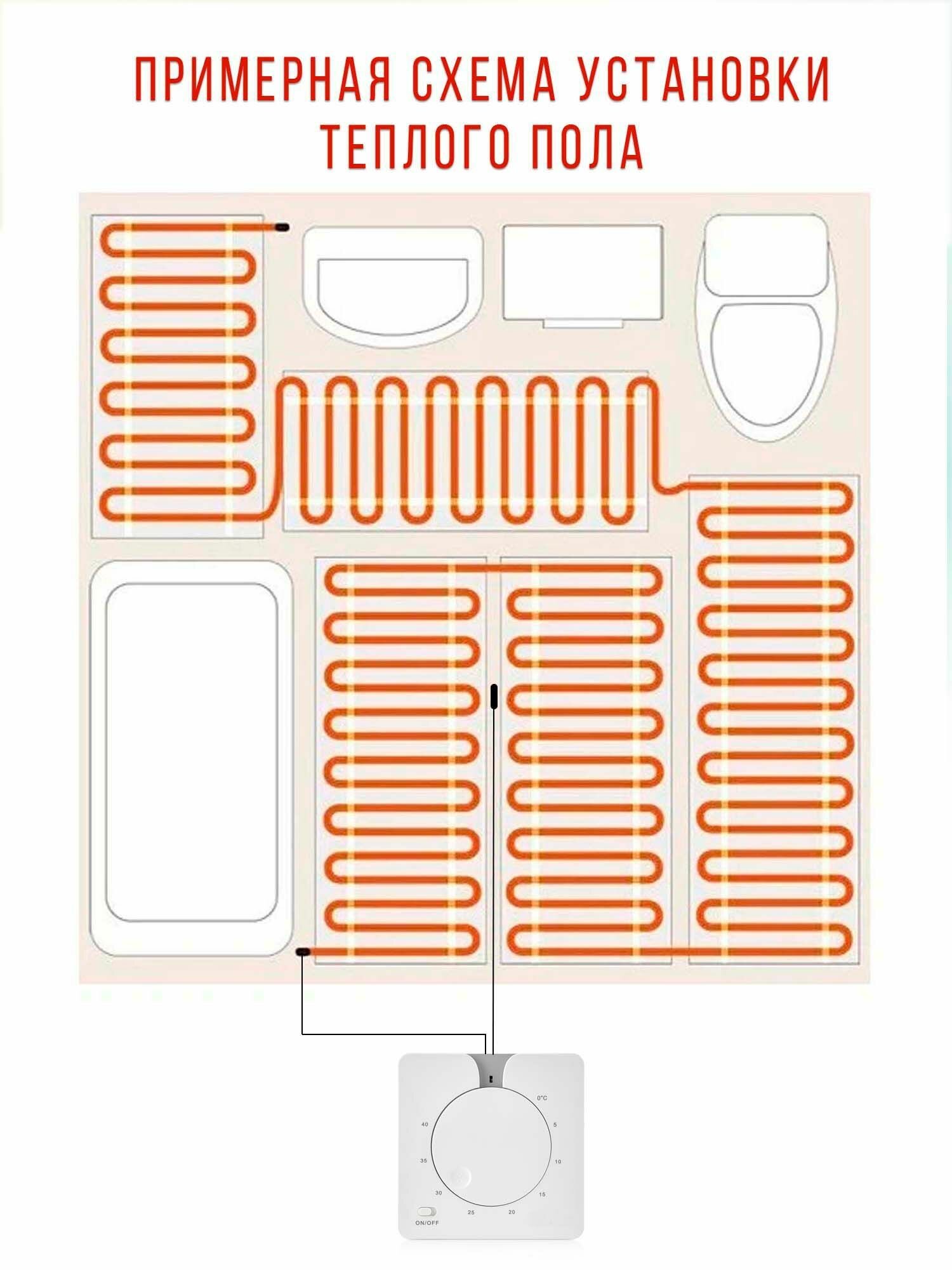 Теплый пол электрический с терморегулятором, под плитку WATOM WTM, 1280 Вт, 8 кв. м.