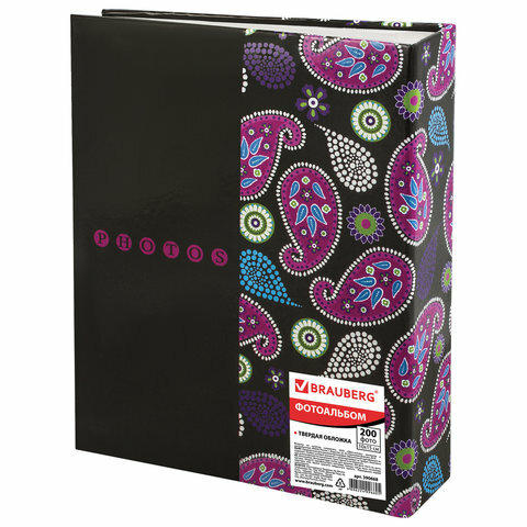Фотоальбом BRAUBERG на 200 фотографий 10х15 см, твердая обложка, "Пейсли", черный с розовым, 390668 (арт. 390668)