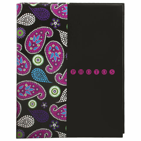 Фотоальбом BRAUBERG на 200 фотографий 10х15 см, твердая обложка, "Пейсли", черный с розовым, 390668, 390668