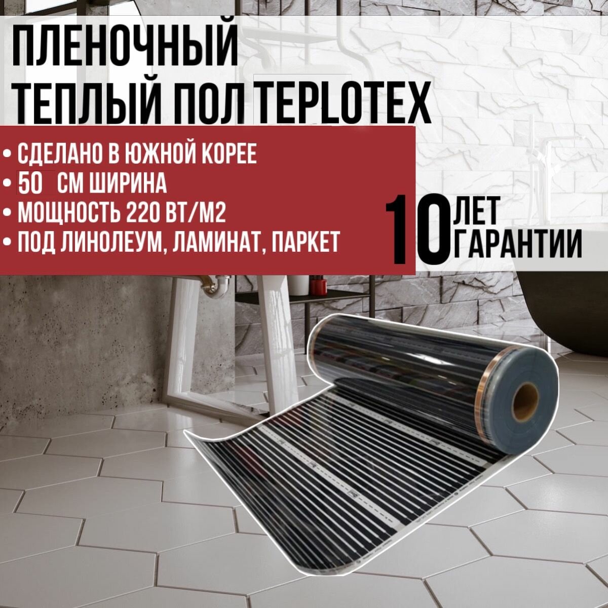 Электрический инфракрасный пленочный теплый пол Teplotex под линолеум, ламинат, паркет ширина 0,5 м, 1 м. п. интересное: