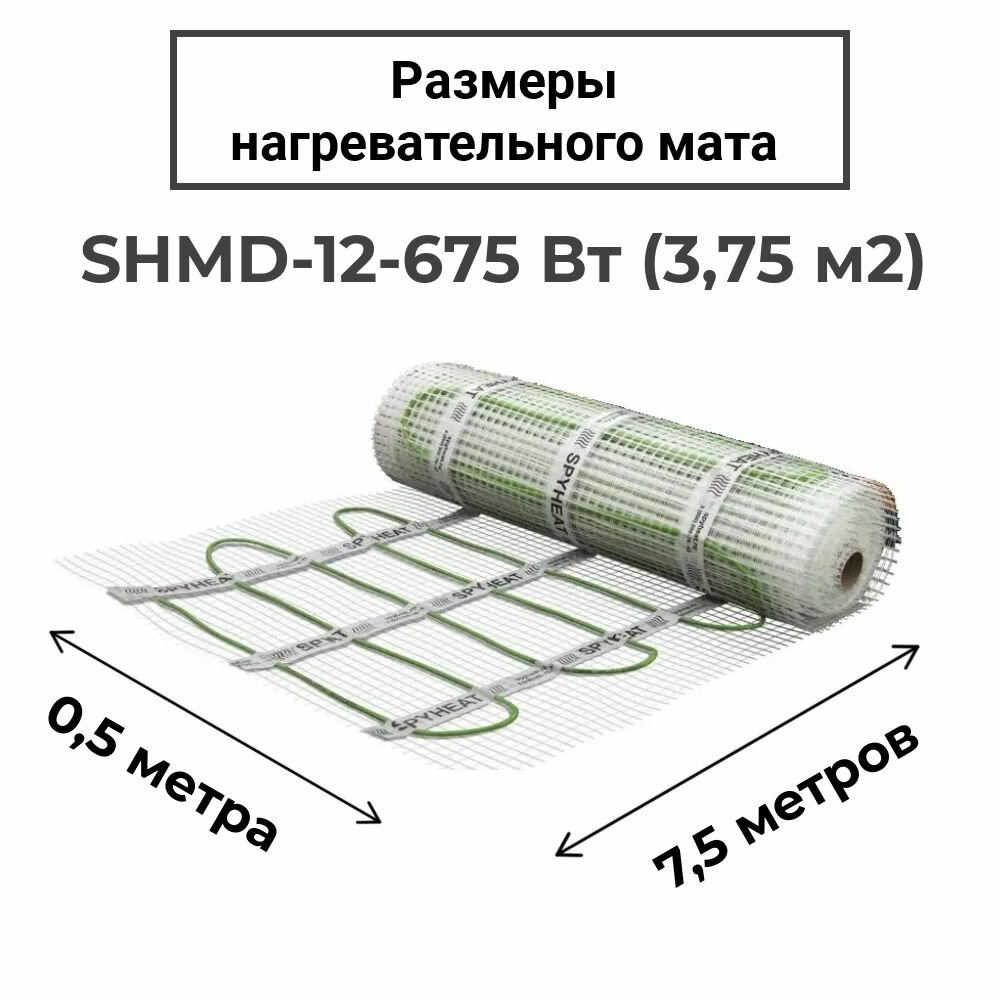 3,75 м2 Теплый пол (электрический) под плитку нагревательный мат SpyHeat SHMD-12-675 Вт с программируемым Wi-Fi терморегулятором
