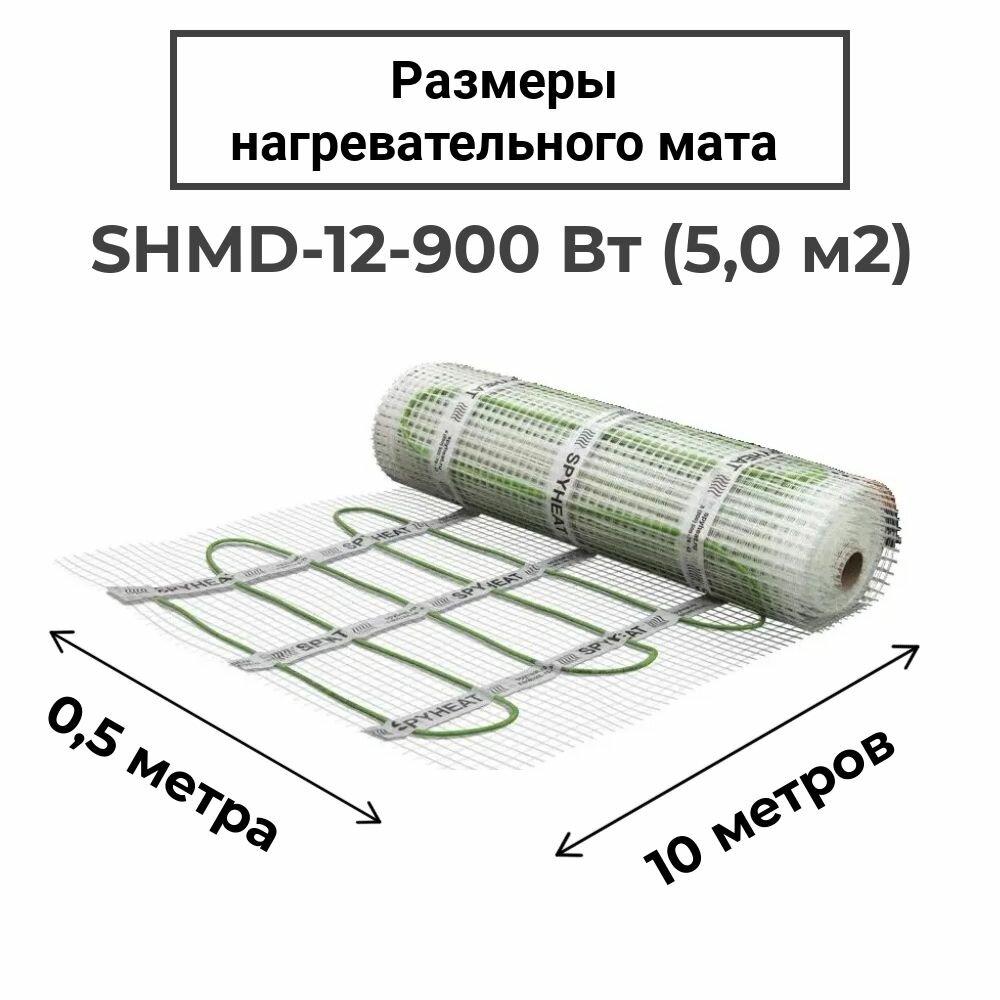 5,0 м2 Теплый пол (электрический) под плитку нагревательный мат SpyHeat SHMD-12-900 Вт с программируемым Wi-Fi терморегулятором