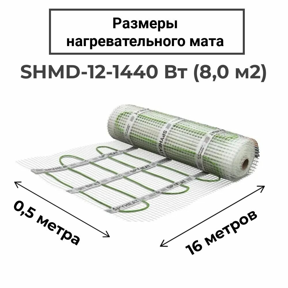 Купить 8,0 м2 Теплый пол (электрический) под плитку нагревательный мат SpyHeat SHMD-12-1440 Вт с программируемым Wi-Fi терморегулятором