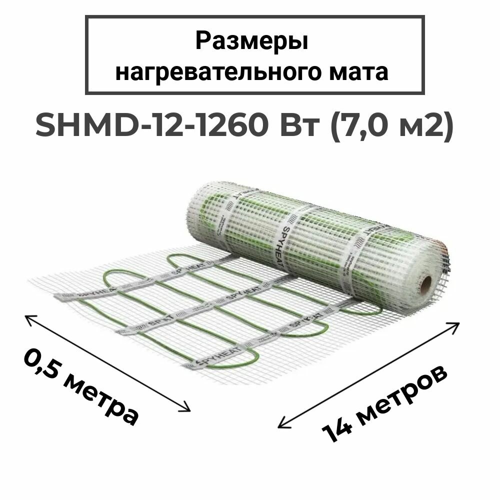 7,0 м2 Теплый пол (электрический) под плитку нагревательный мат SpyHeat SHMD-12-1260 Вт с программируемым Wi-Fi терморегулятором