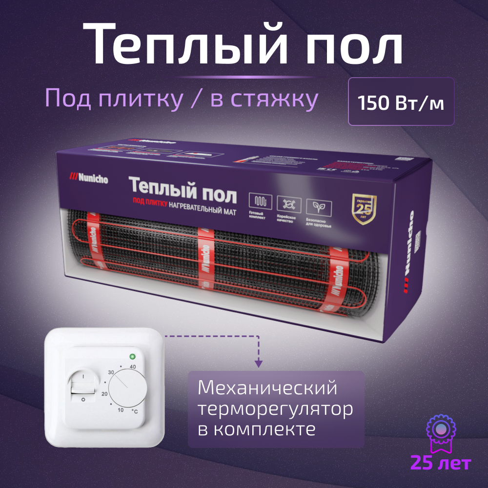 Теплый пол электрический под плитку Nunicho 1 м2 150 Вт с механическим терморегулятором