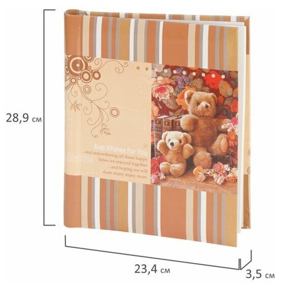 Фотоальбом BRAUBERG на 10 магнитных листов, 23х28 см, Плюшевые мишки, коричнево-бежевый, 390683