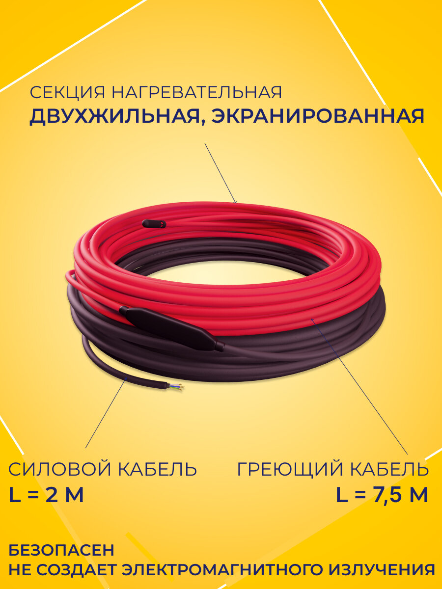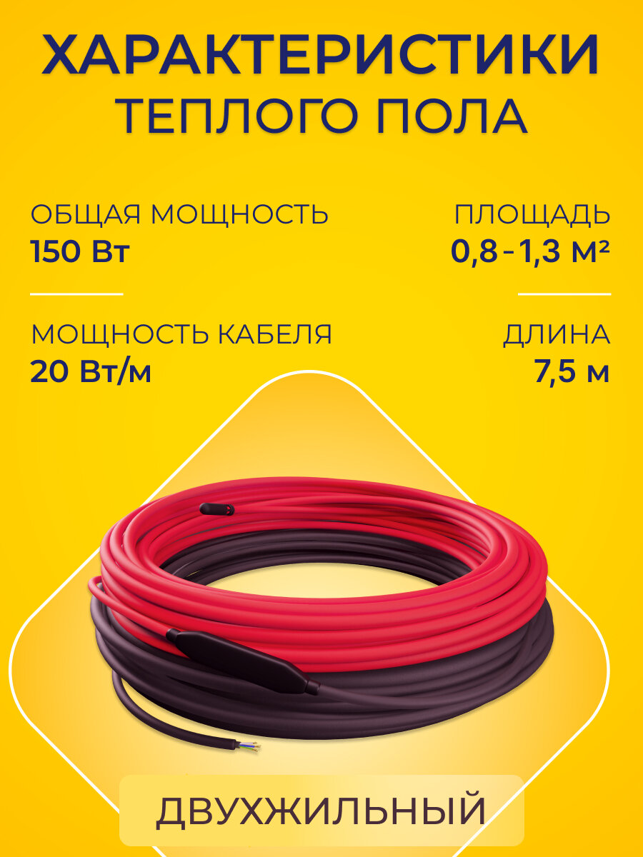 Теплый пол в стяжку, площадь 0.8-1.3 м2, мощность системы 150 Вт, с терморегулятором