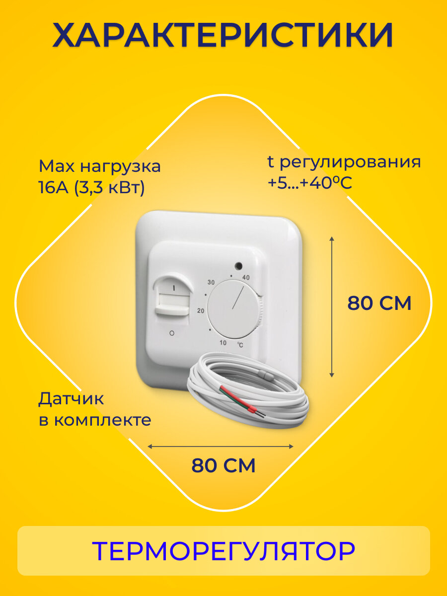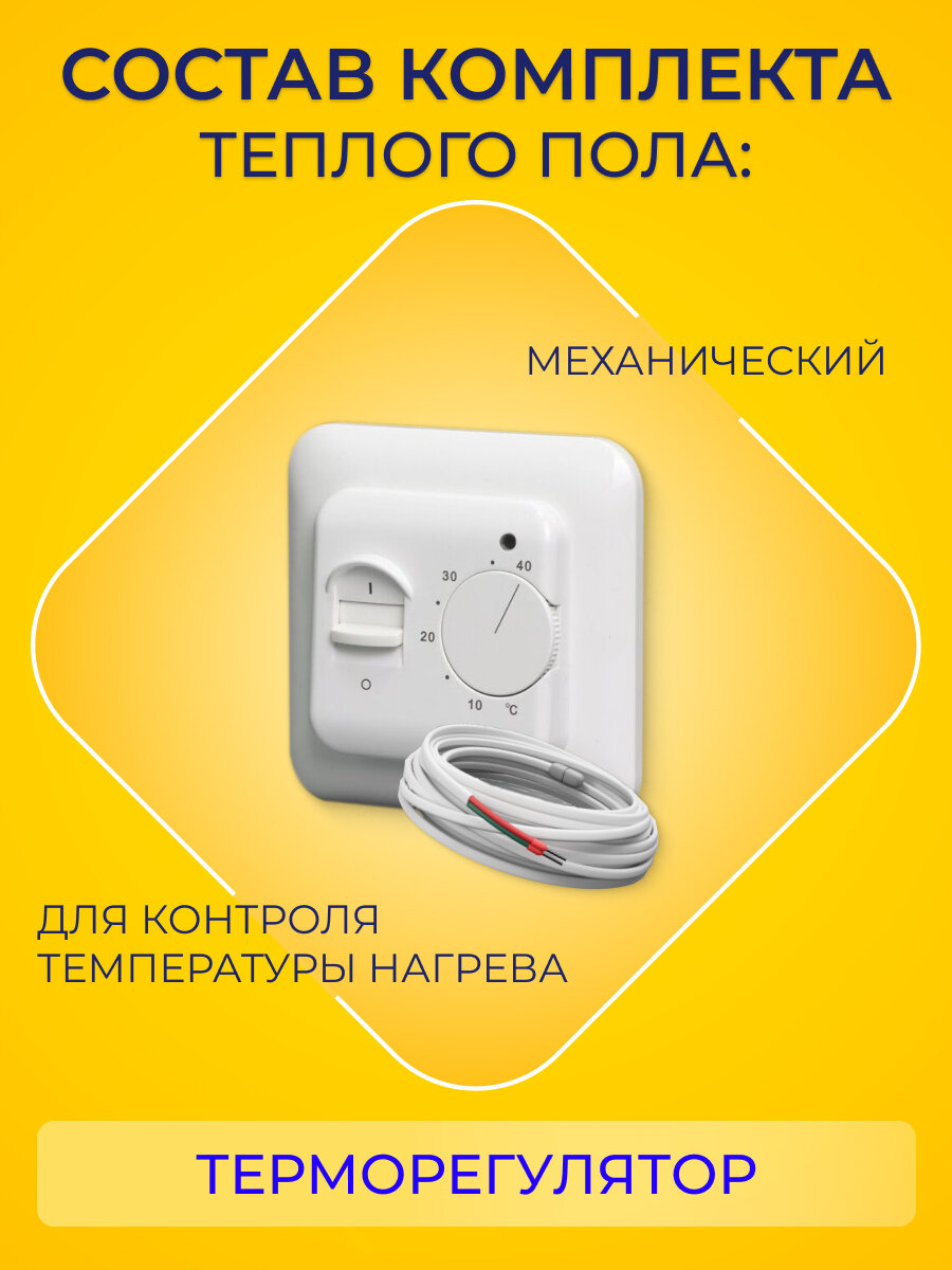 Теплый пол в стяжку, площадь 0.8-1.3 м2, мощность системы 150 Вт, с терморегулятором