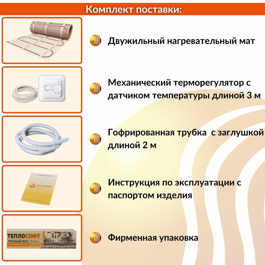 Купить Теплый пол электрический под плитку 4 м2 с терморегулятором. Нагревательный мат 4м. кв.