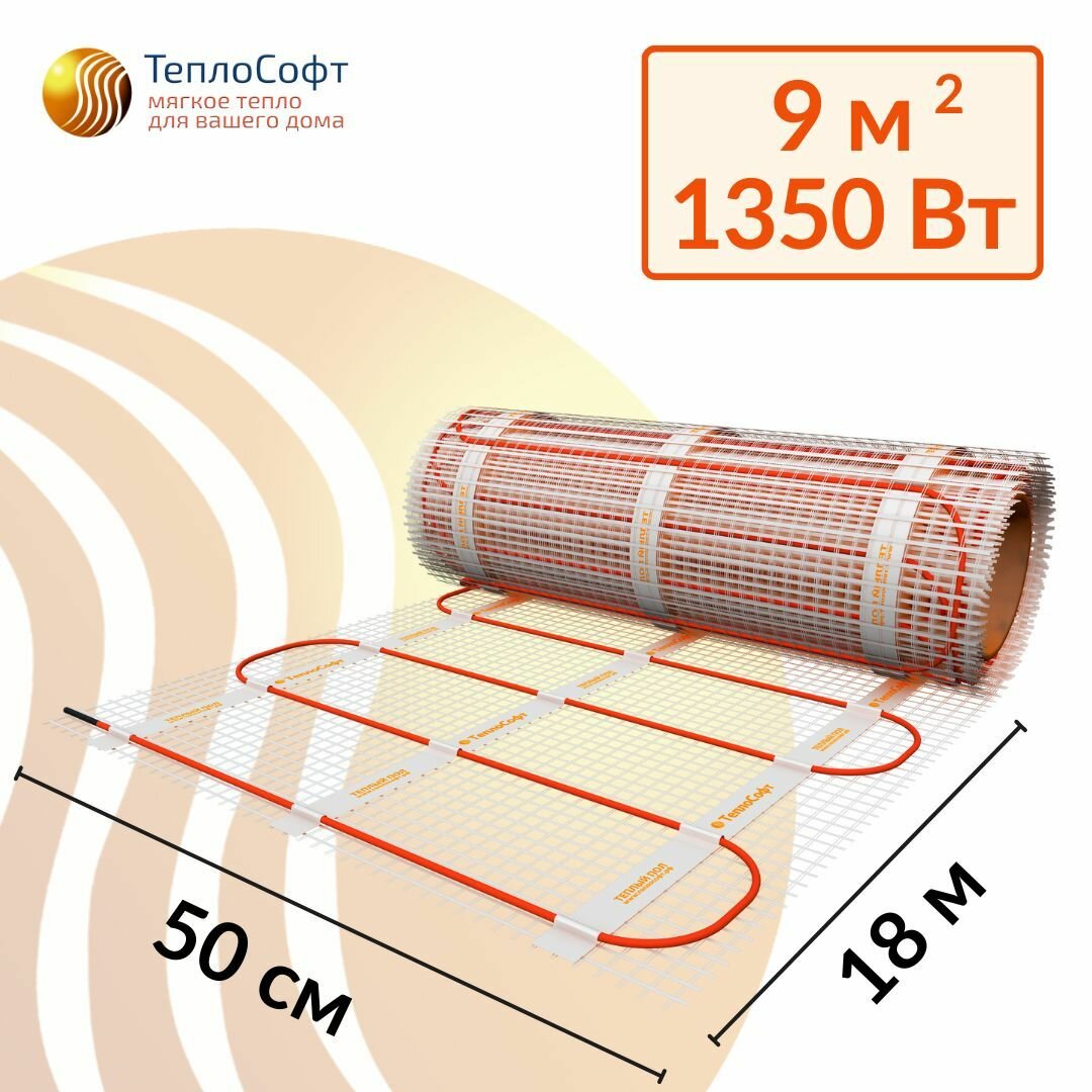 Купить Теплый пол электрический под плитку 9 м2 с сенсорным терморегулятором. Нагревательный мат 9м. кв.