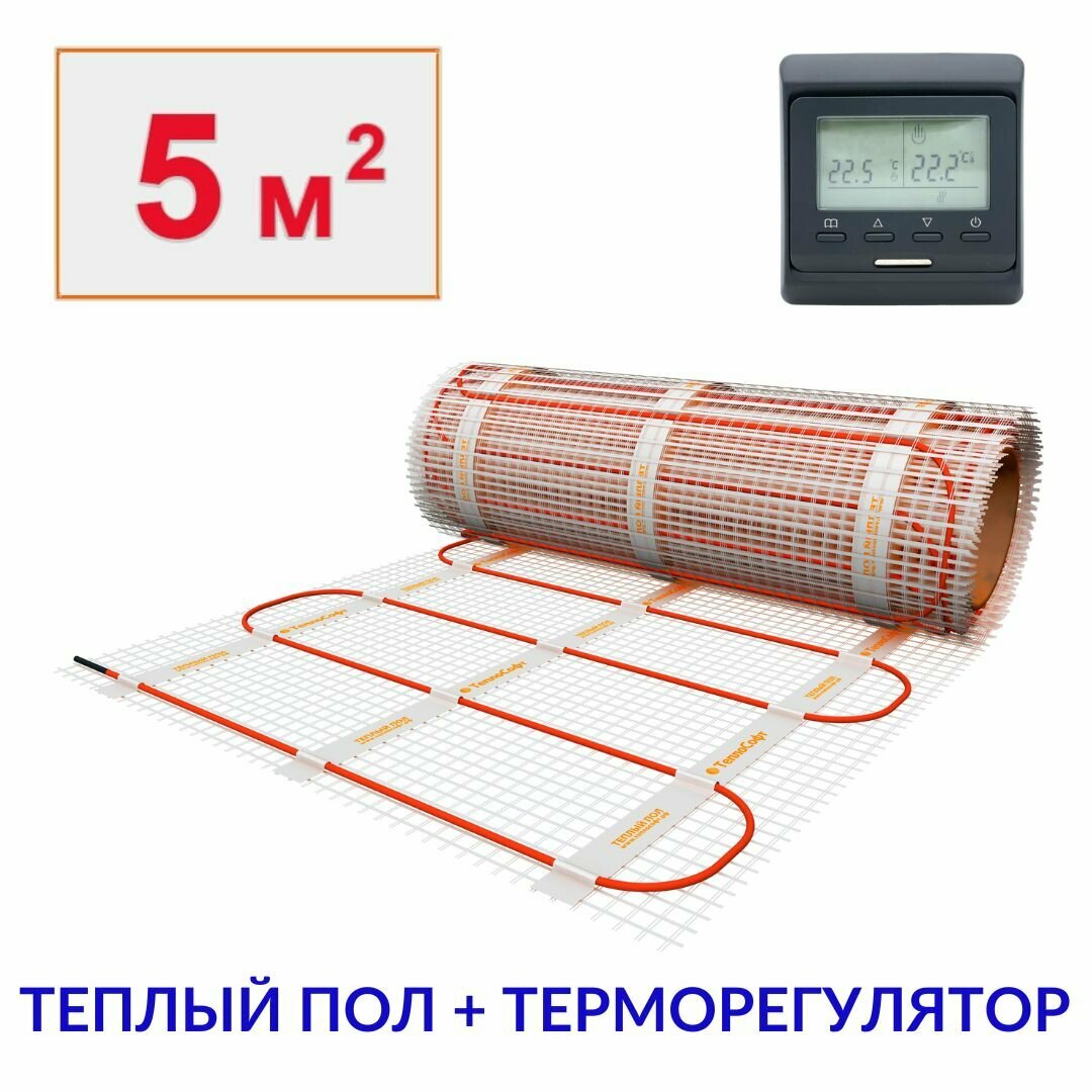 Купить Теплый пол электрический под плитку 5 м2 с черным электронным терморегулятором. Нагревательный мат 5м. кв