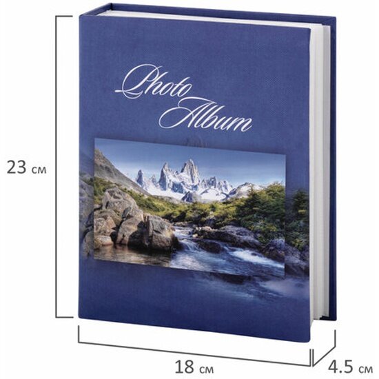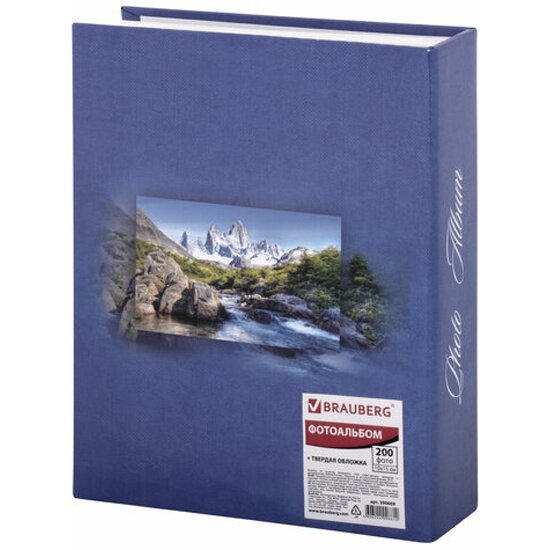 Фотоальбом BRAUBERG на 200 фотографий 10х15 см, твердая обложка, Горный пейзаж, синий, 390669