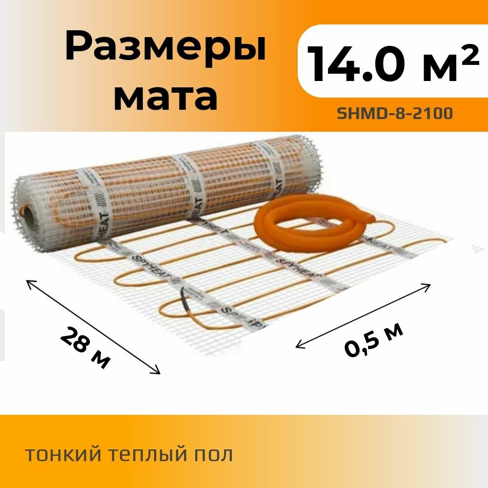 14,0 м2 Теплый пол без стяжки под плитку нагревательный мат SpyHeat SHMD-8-2100 Вт с программируемым Wi-Fi терморегулятором
