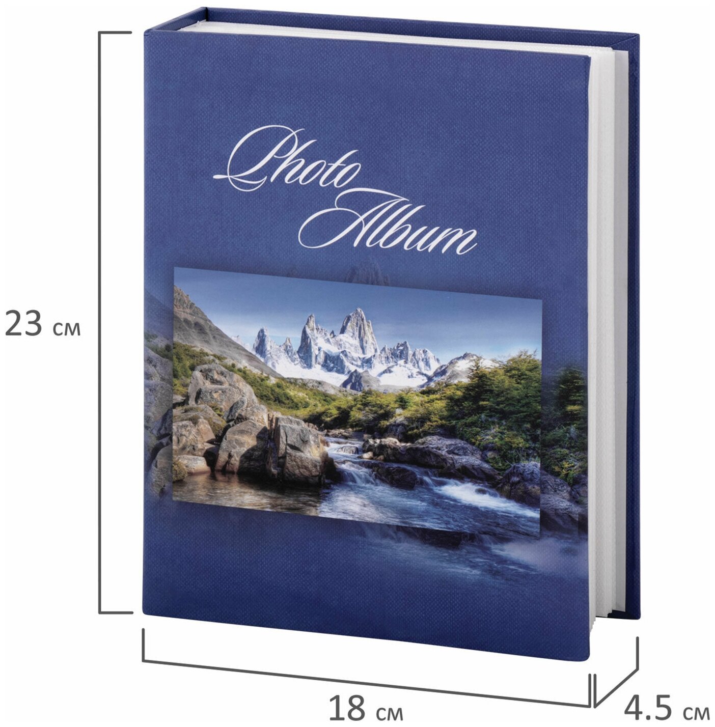 Фотоальбом BRAUBERG на 200 фотографий 10х15 см, твердая обложка, Горный пейзаж, синий, 390669
