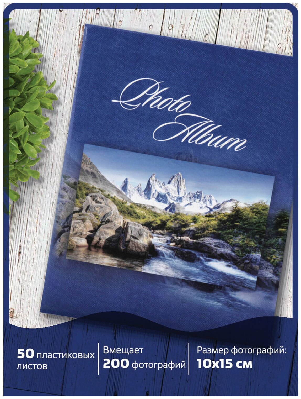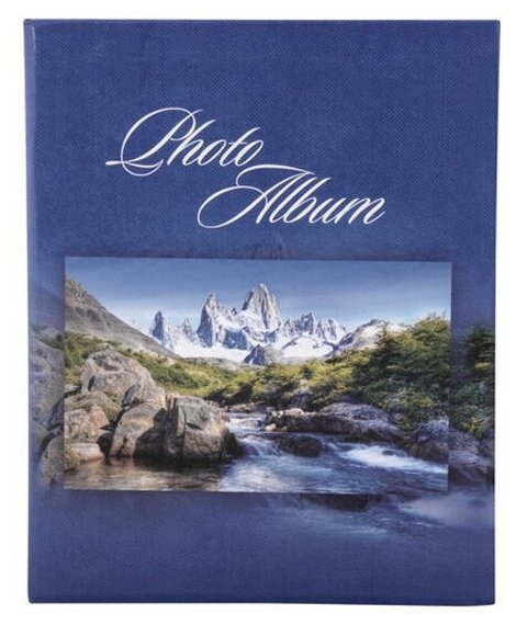 Фотоальбом семейный/свадебный/детский на 200 фотографий 10x15см "Горный пейзаж", твердая обложка, листы с карманами, синий, Brauberg
