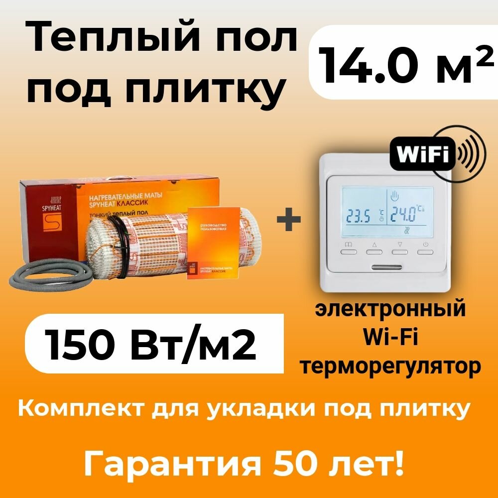 Купить 14,0 м2 Теплый пол без стяжки под плитку нагревательный мат SpyHeat SHMD-8-2100 Вт с программируемым Wi-Fi терморегулятором