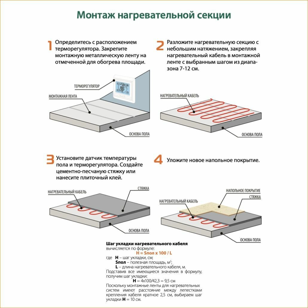Теплый пол в стяжку от 0,9 до 1,4 м2, 171 Вт, c регулятором RTC-70, нагревательная секция КСН18