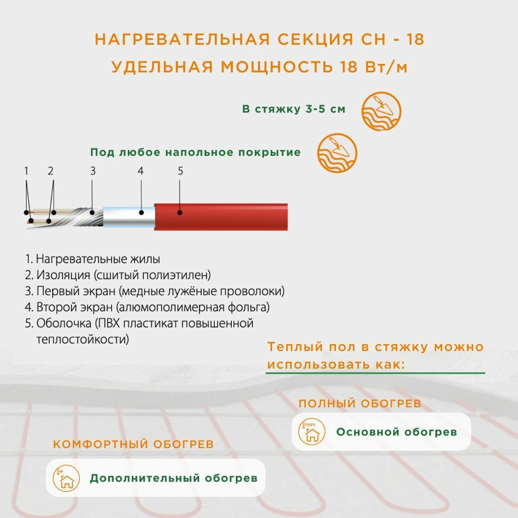 Теплый пол в стяжку от 2,8 до 4,7 м2, мощность 558 Вт, регулятор программируемый в комплекте, КСН-18
