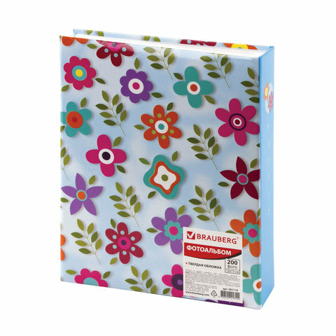 Фотоальбом BRAUBERG на 200 фото 10х15 см, твердая обложка, "Цветочки", разноцветный, 391119 И 4606224216102