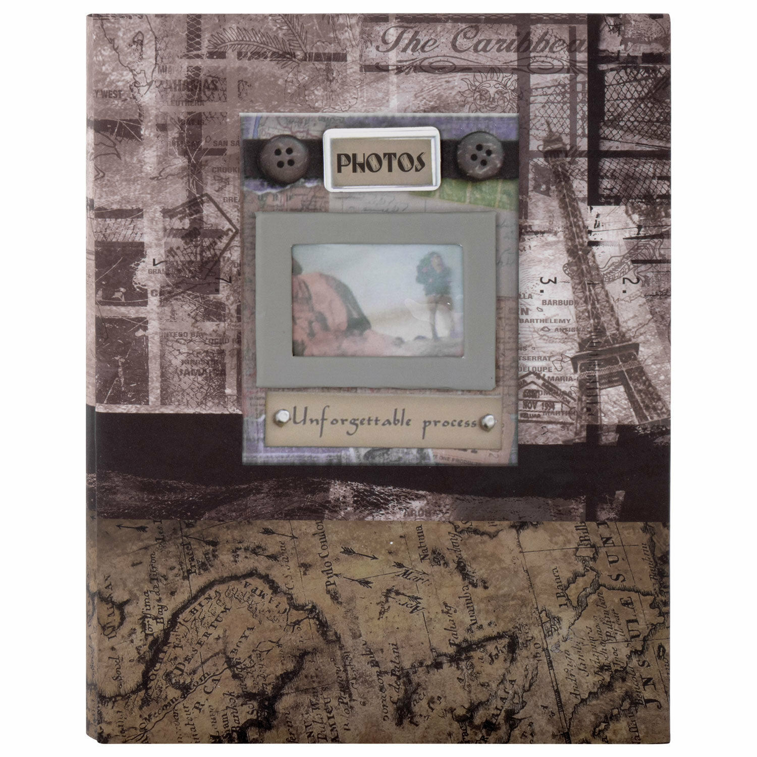 Купить Фотоальбом семейный/свадебный/детский "Путешествие" на 200 фотографий 10x15см, твердая обложка, книжний переплет, бумажные листы с карманами, коричневый, Brauberg