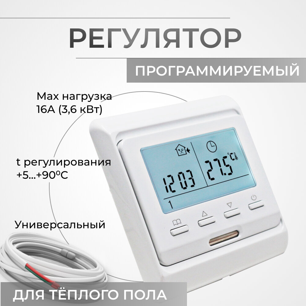Купить Теплый пол под кафель 8 м2, мощность 1200 Вт, мат нагревательный двухжильный, с терморегулятором программируемым