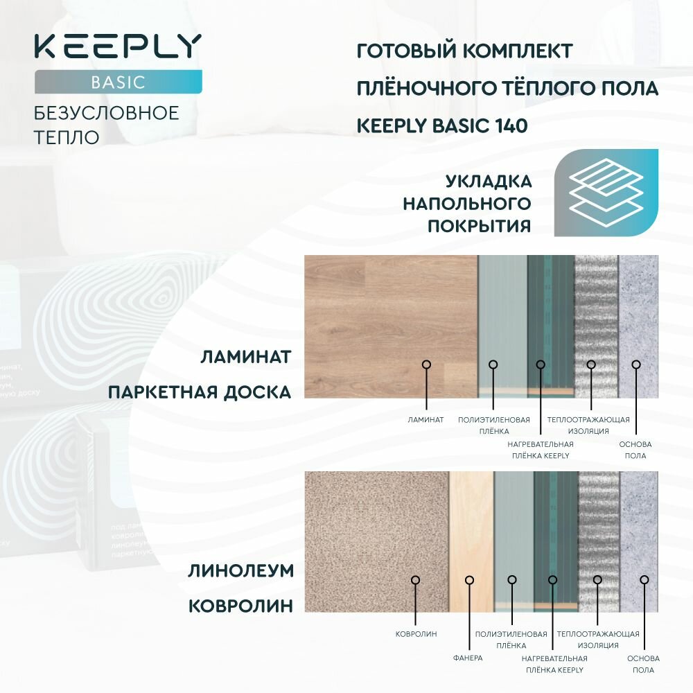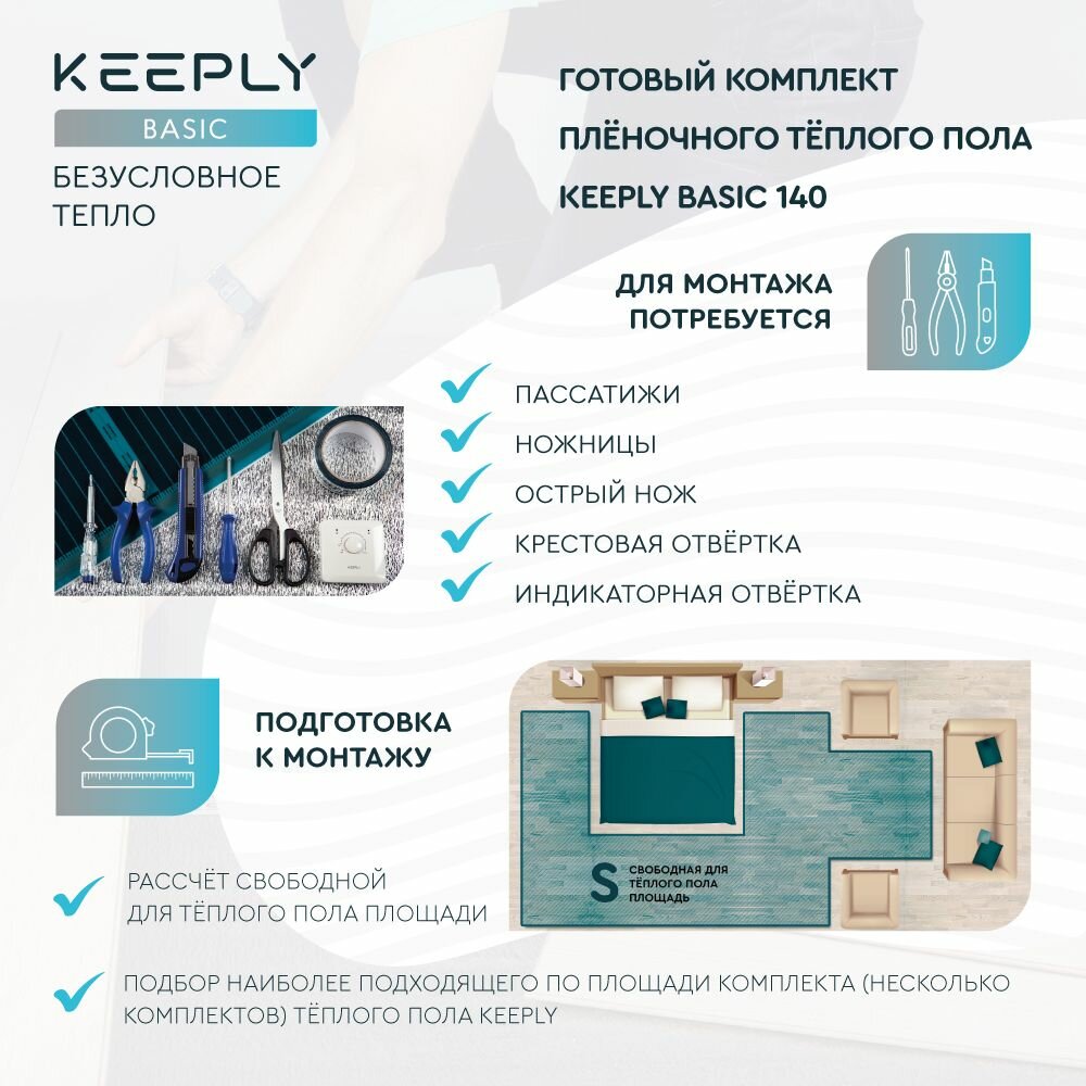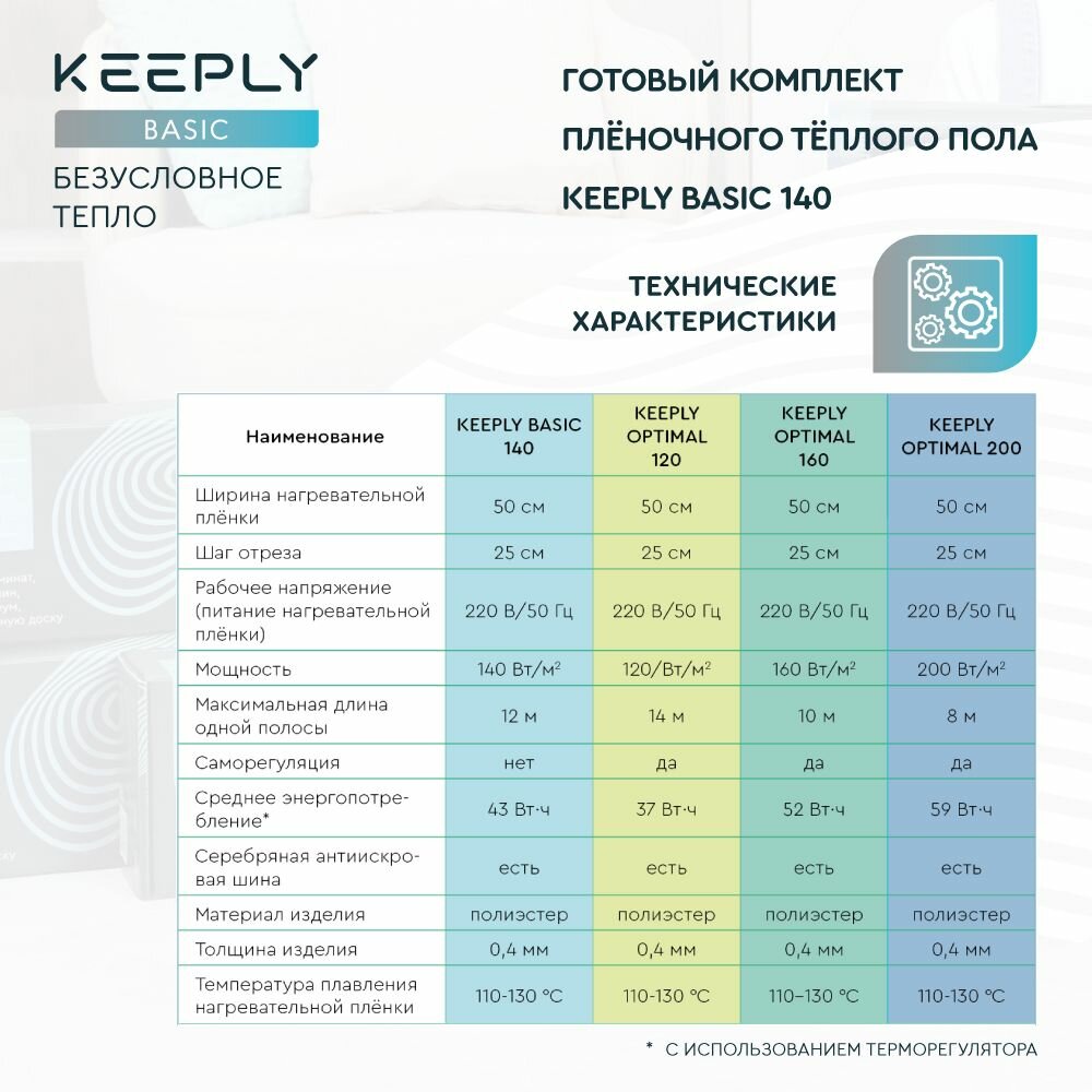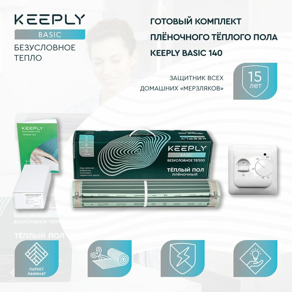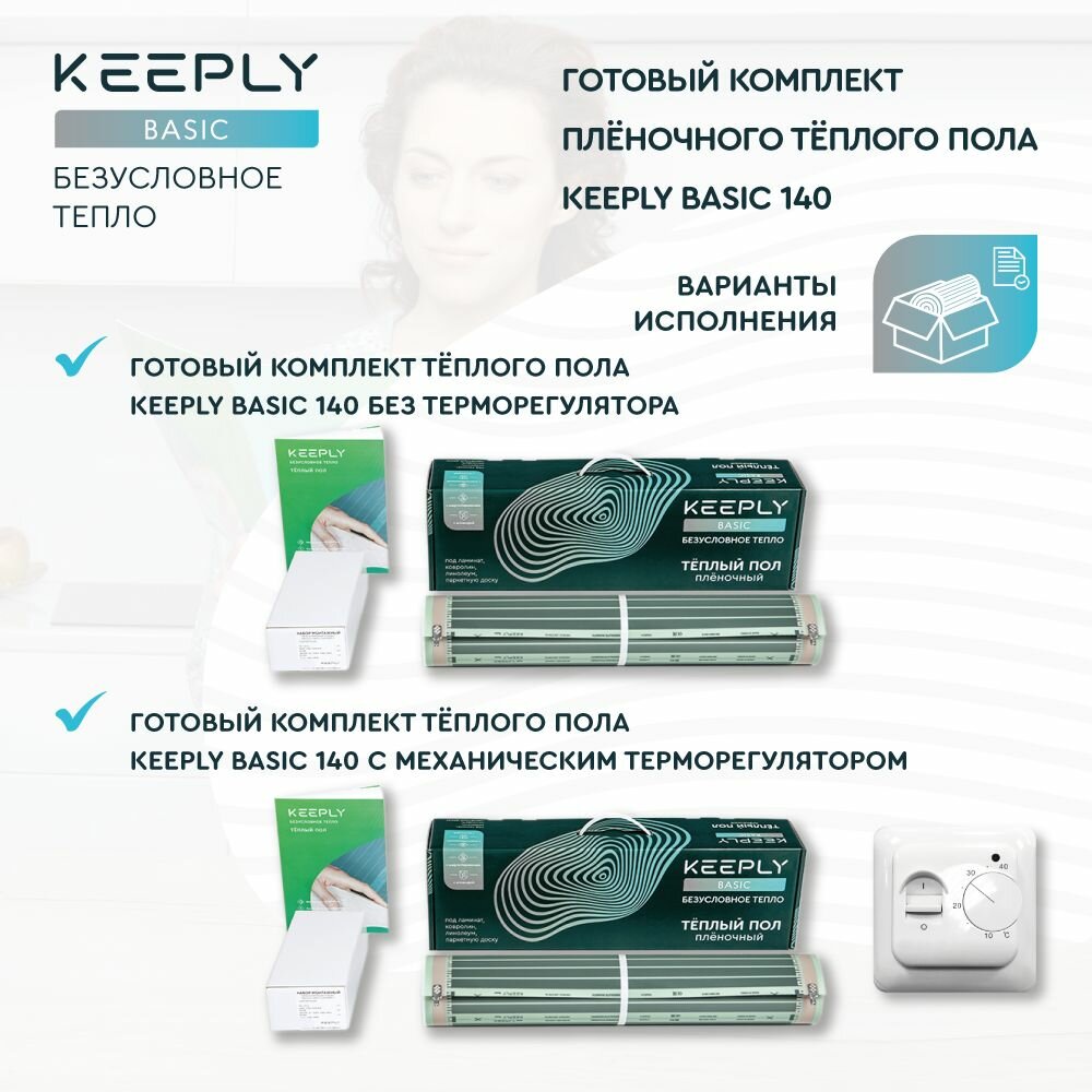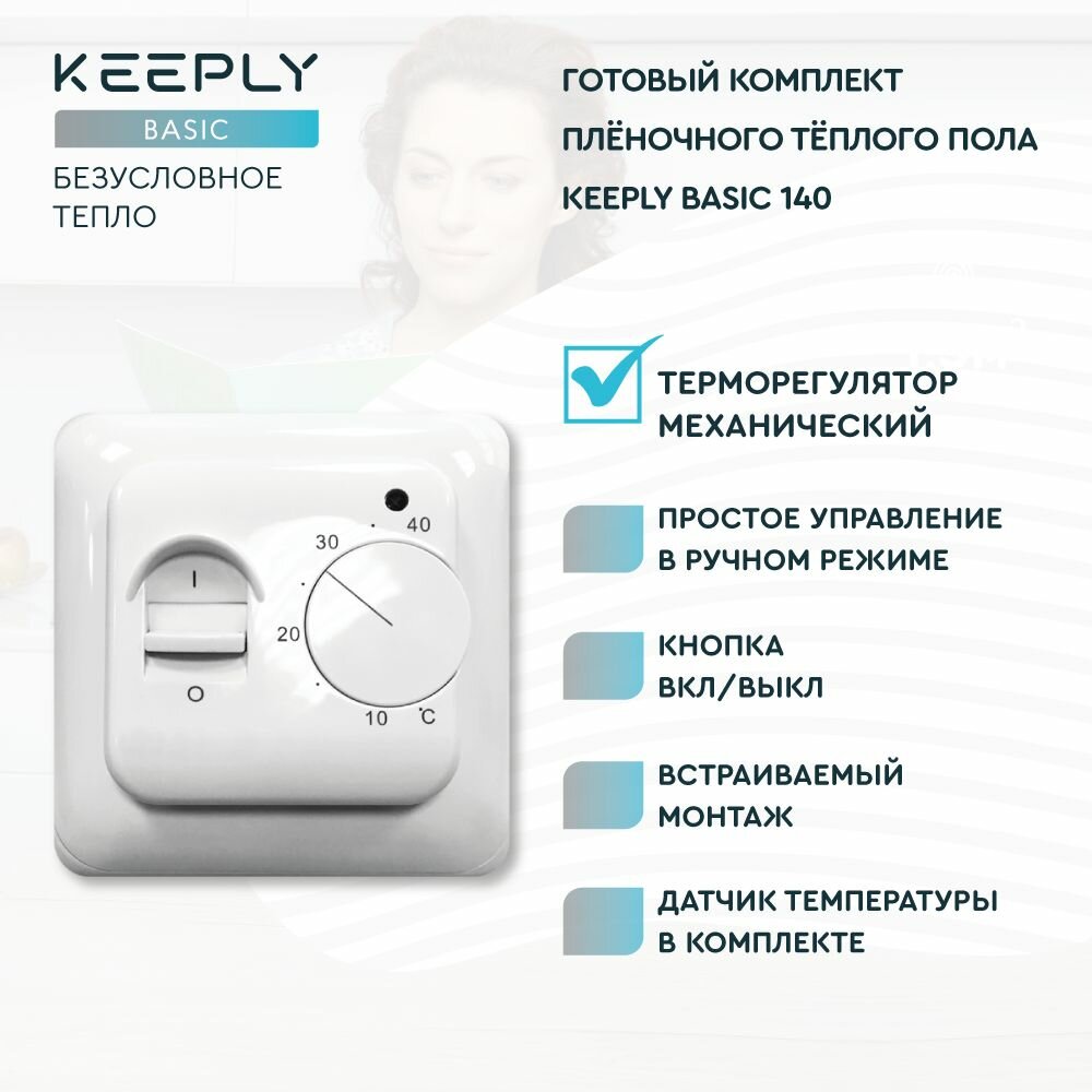 Теплый пол пленочный KEEPLY BASIC 140 1,5 кв. м, шир. 0,5 м с механическим терморегулятором интересное: