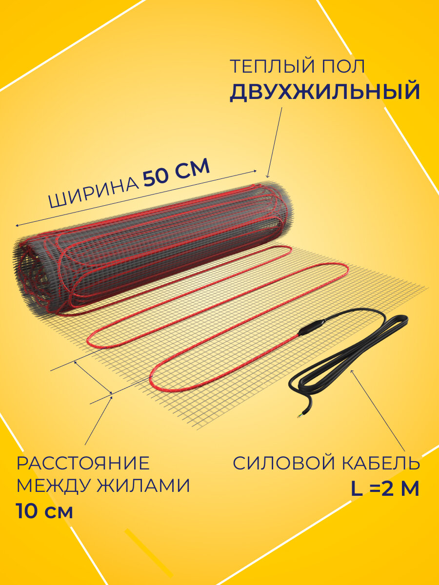 Теплый пол под кафель 10 м2, мощность 1500 Вт, мат нагревательный на сетке, с регулятором