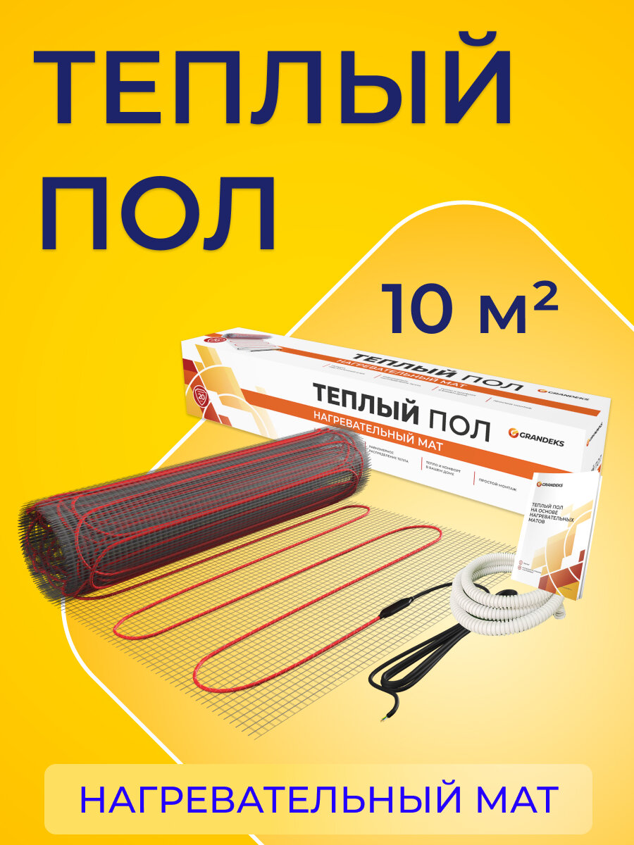 СохранитьТеплый пол тонкий под кафель 10 м2 Грандекс, нагревательный мат двухжильный экранированный на сетке интересное: