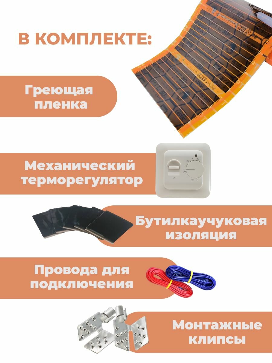Саморегулирующаяся инфракрасная плёнка (Ширина 50 см) 4м. кв. Комплект с Механическим терморегулятором