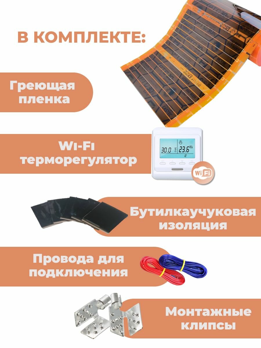 Саморегулирующаяся инфракрасная плёнка (Ширина 50 см) 3м. кв. Комплект с Wi-Fi терморегулятором