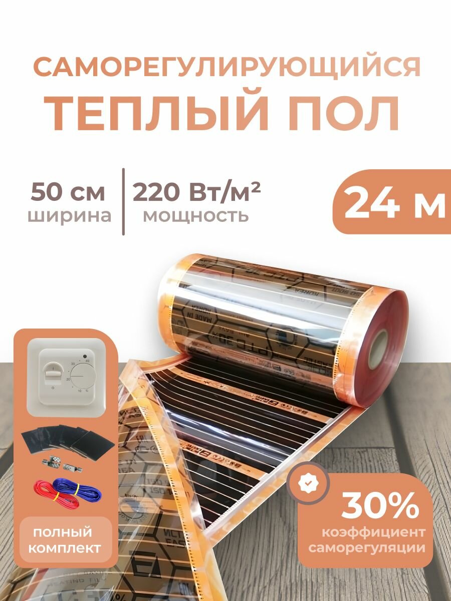 Саморегулирующаяся инфракрасная плёнка (Ширина 50 см) 12м. кв. Комплект с Сенсорным терморегулятором