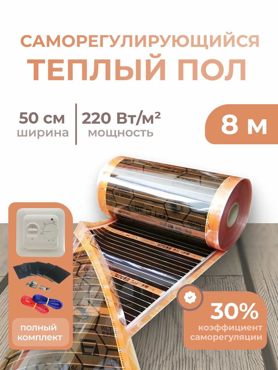 Саморегулирующаяся инфракрасная плёнка (Ширина 50 см) 8м. кв. Комплект с Сенсорным терморегулятором