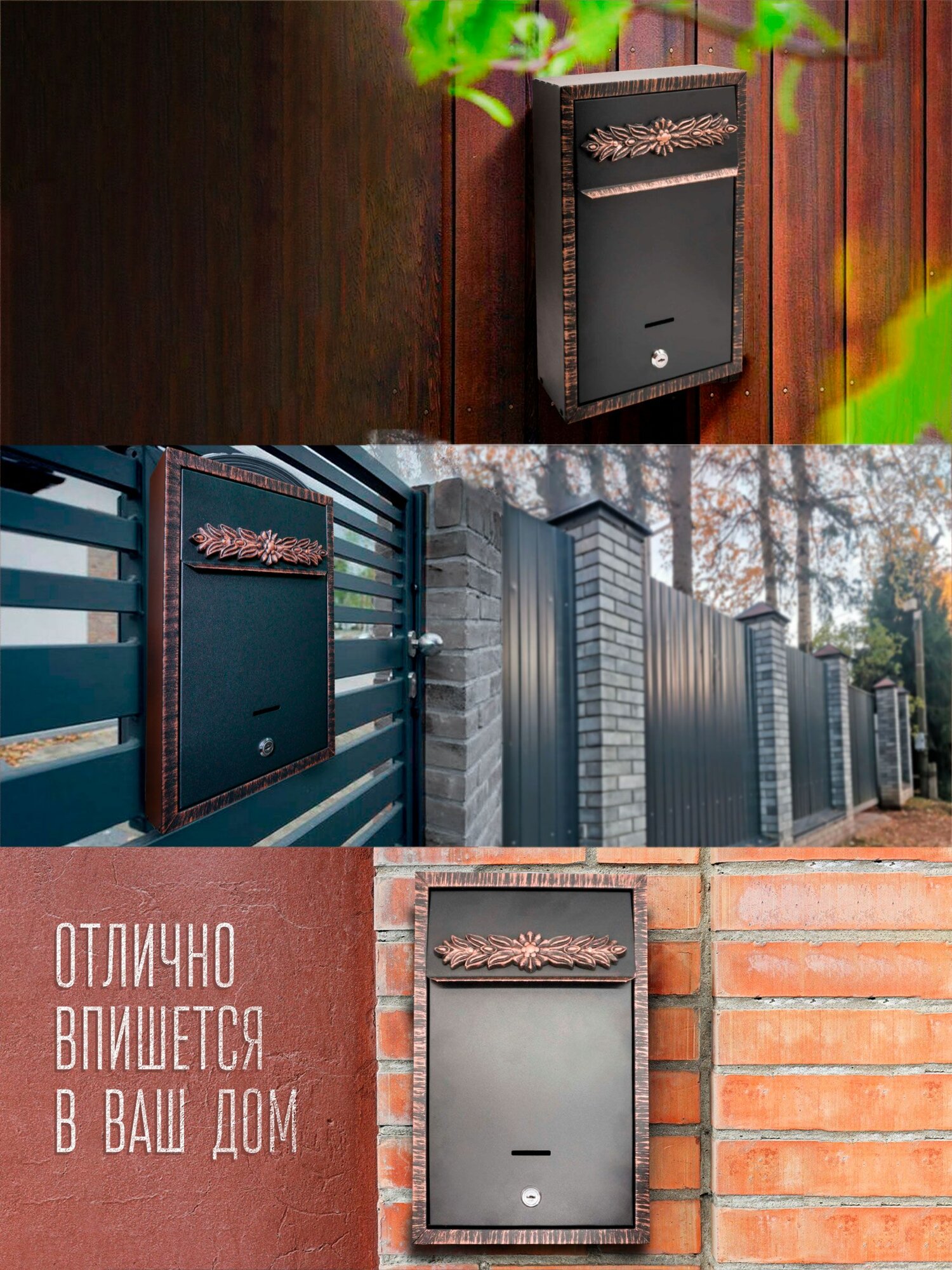 Ящик почтовый Агроснаб "Альфа Люкс" с накладкой PREMIUM/цвет: медный/для почты и писем/уличный ящик с ключом интересное: