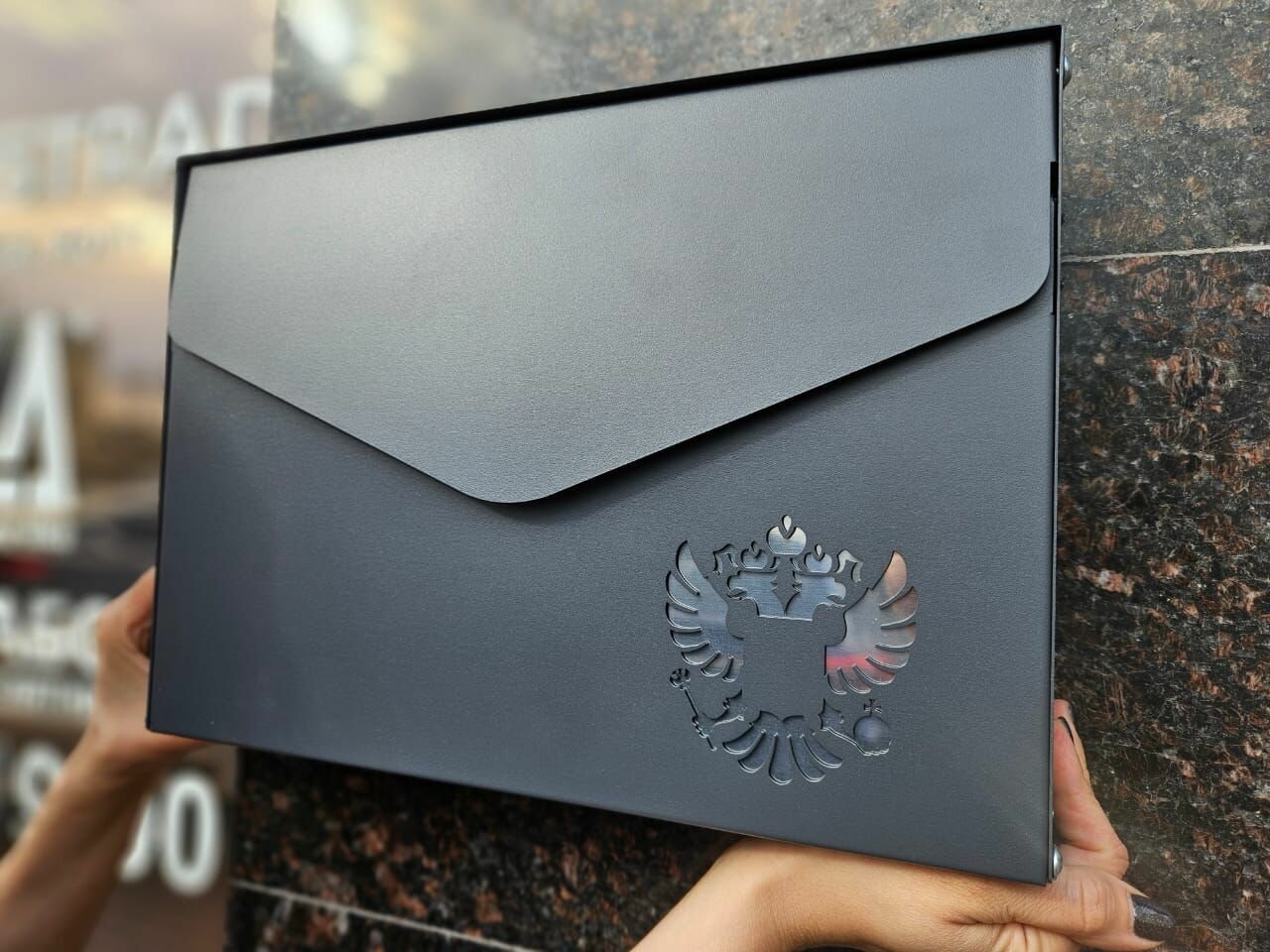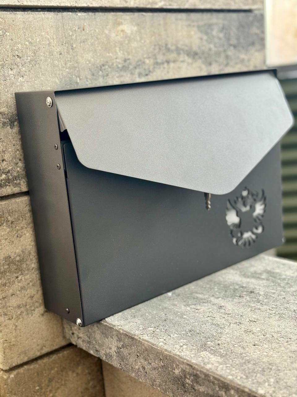 Почтовый ящик уличный с замком, металлический, серый (гравировка "Герб") интересное: