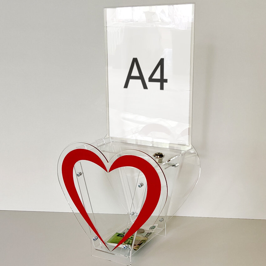 Купить Ящик для пожертвований Сердце с карманом А4, замок с двумя ключами