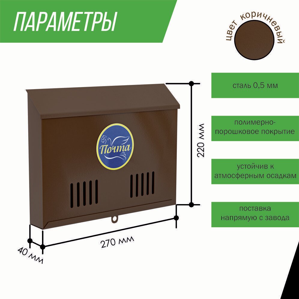 Почтовый ящик уличный без замка широкий с петлей 22х27х4 см (коричневый); МетМастер интересное: