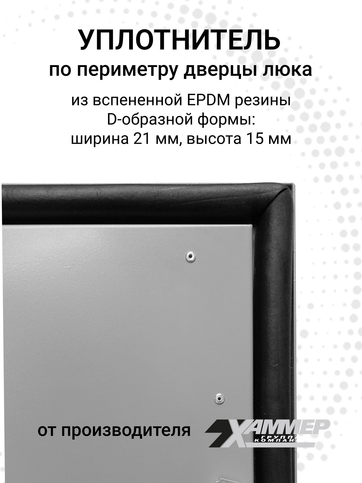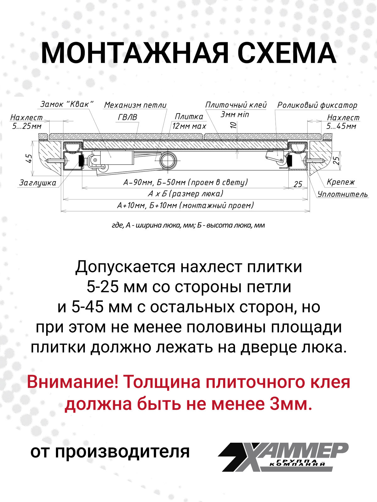 Люк под плитку Хаммер Стил плюс 50х50 (ШхВ), стальной, скрытый, петли на стороне 50