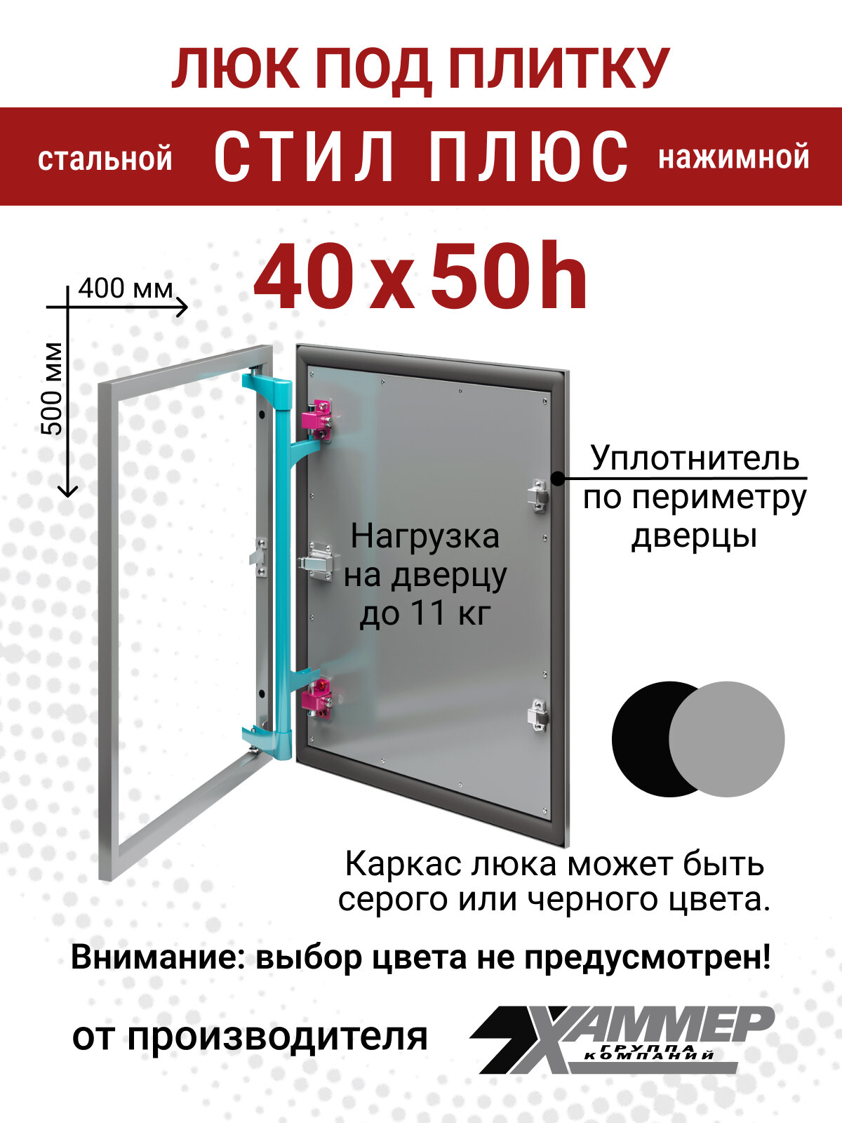 СохранитьЛюк под плитку Хаммер Стил плюс 40х50 (ШхВ), стальной, скрытый, петли на стороне 50 интересное: