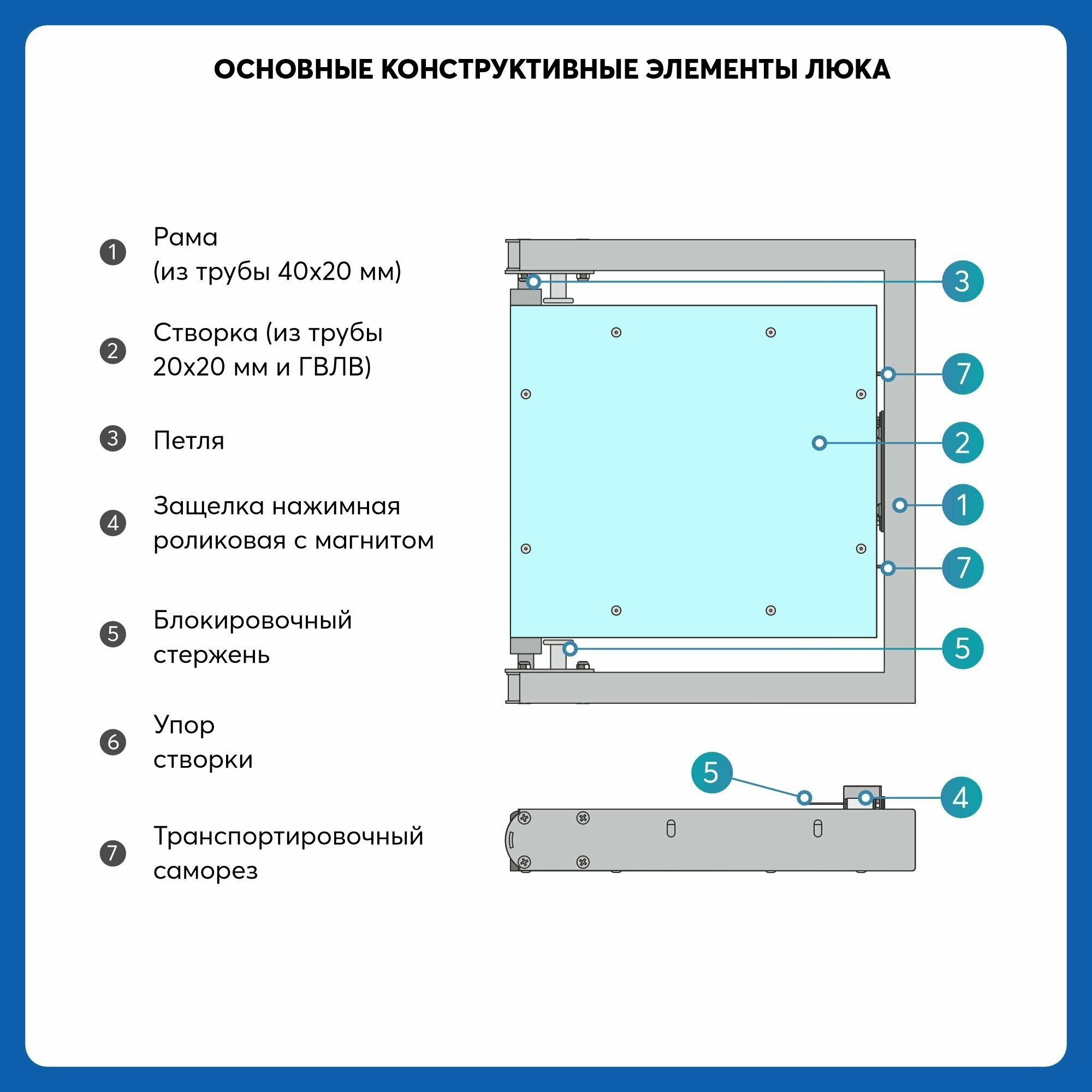 СохранитьЛюк Эвент Форс 60х40. Ревизионный горизонтальный люк нажимной под плитку, без провисания. Фактический размер люка 54,5х42,5 см интересное: