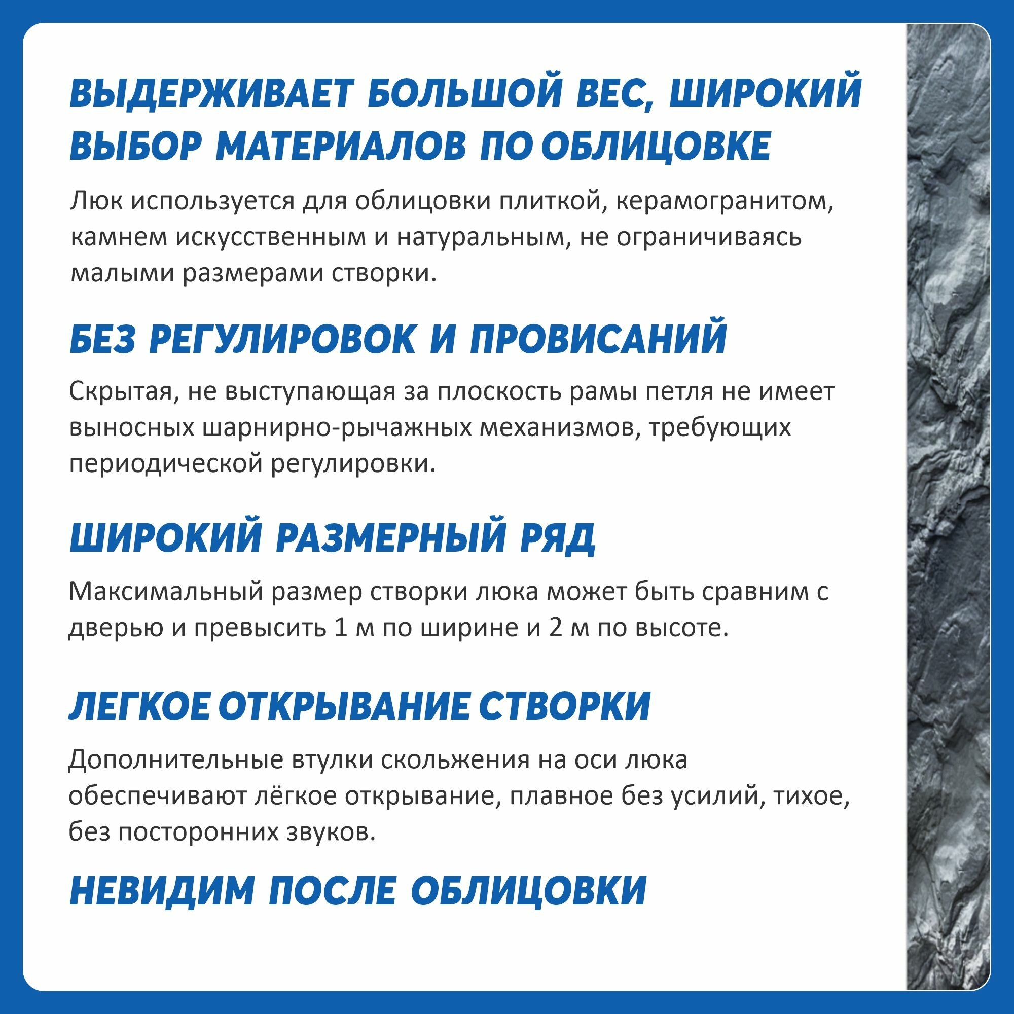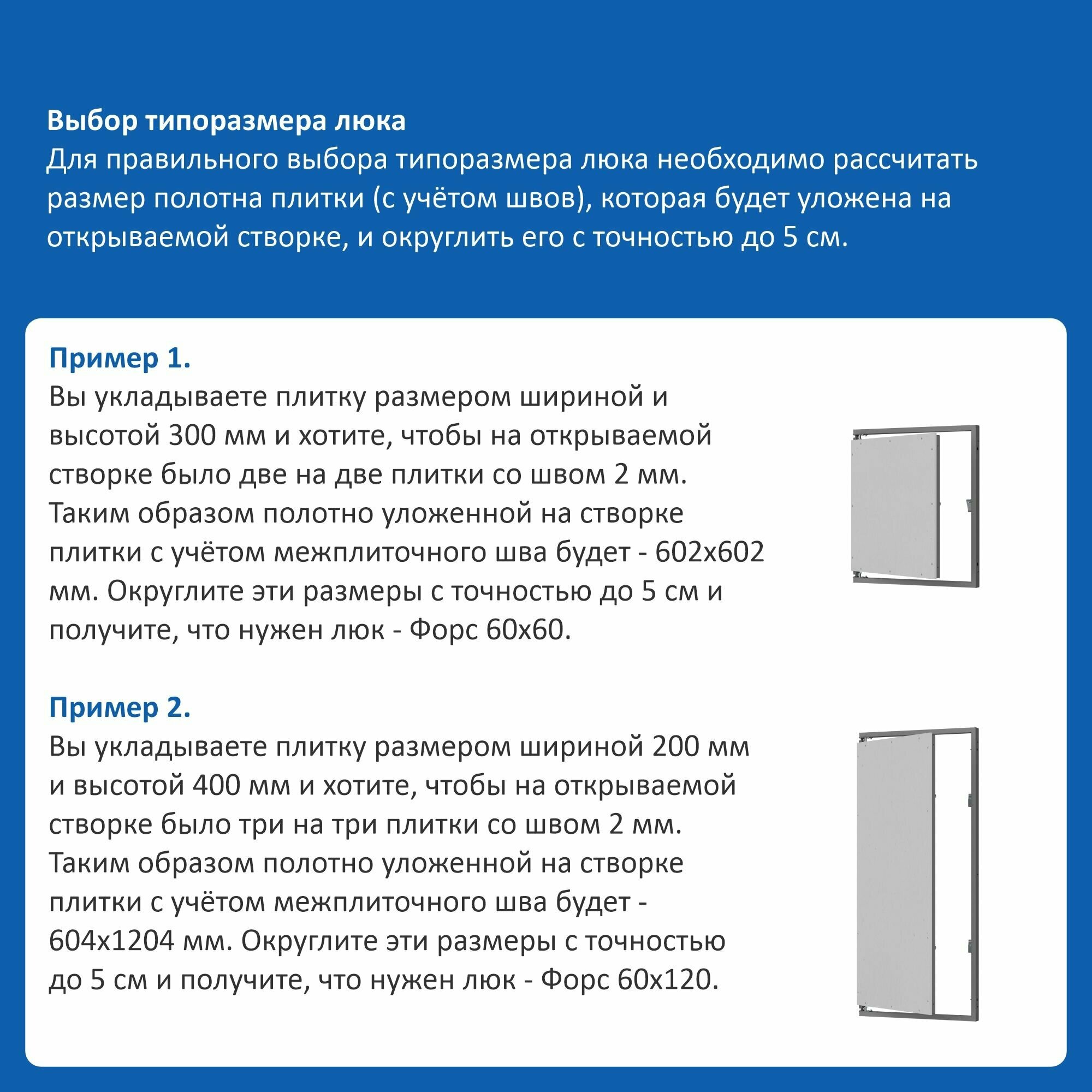 СохранитьЛюк Эвент Форс 50х60. Ревизионный люк нажимной под плитку, без провисания. Фактический размер люка 44,5х62,5 см интересное: