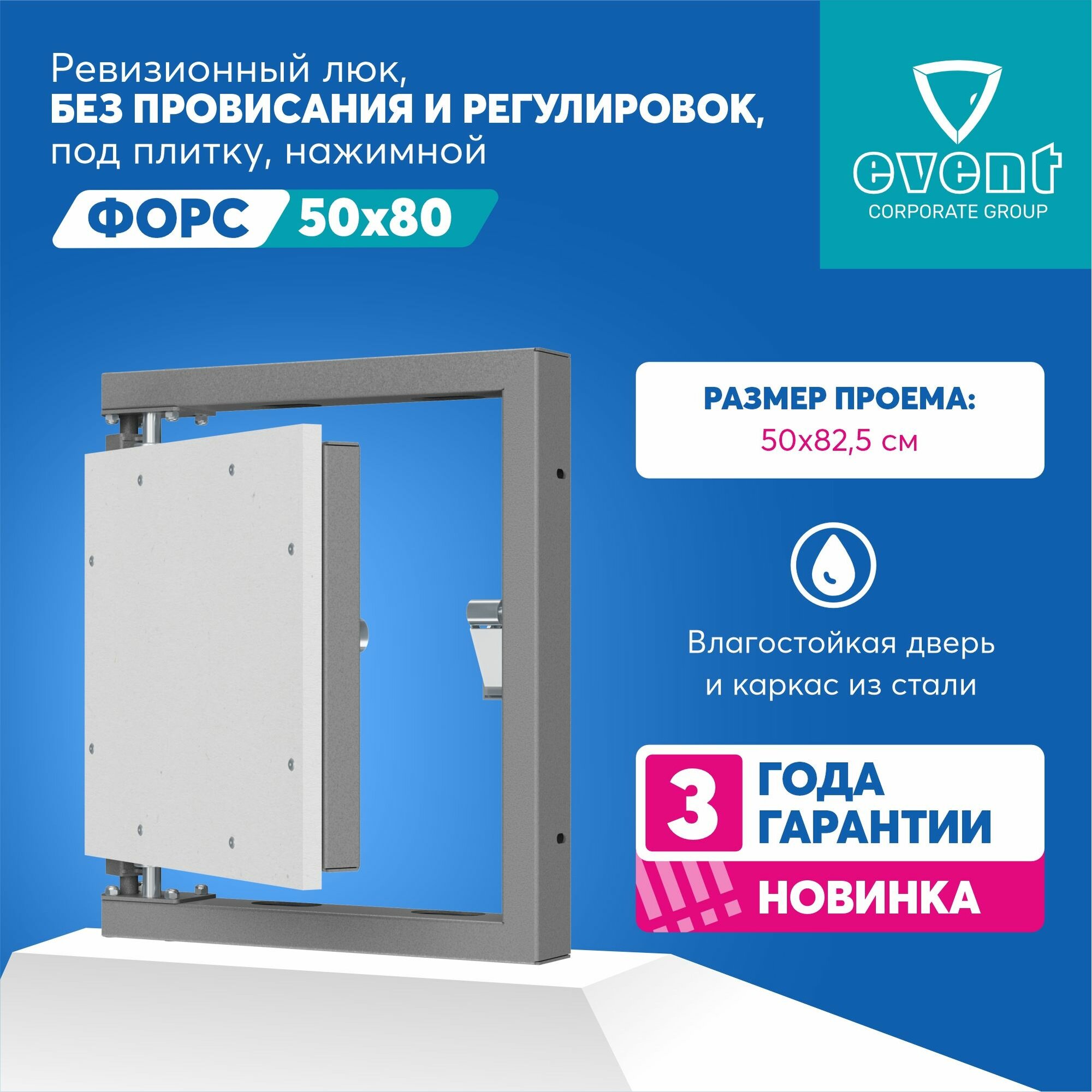 Купить Люк Эвент Форс 50х80. Ревизионный большой люк нажимной под плитку, без провисания. Фактический размер люка 44,5х82,5 см