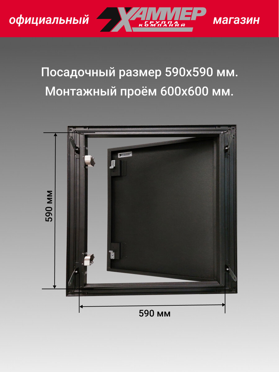 Люк металлический Хаммер 50х50 (ШхВ) см, нажимной, сталь, черный, петли на стороне 50