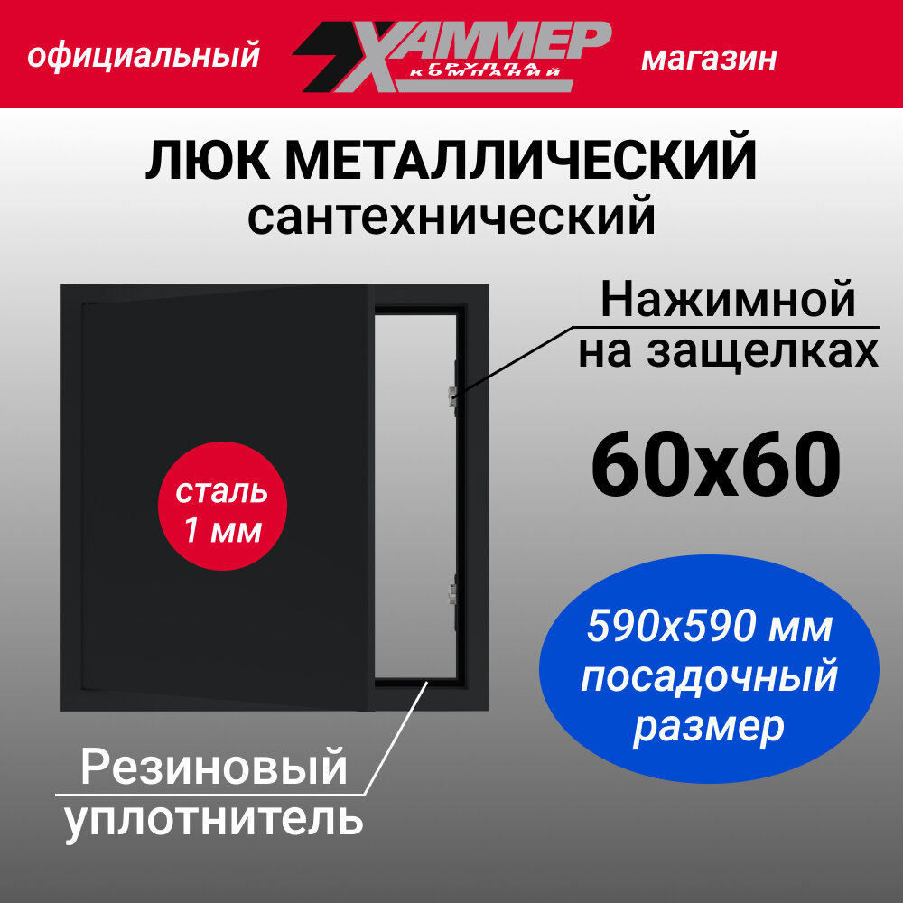СохранитьЛюк металлический Хаммер 60х60 (ШхВ) см, нажимной, сталь, черный, петли на стороне 60 интересное: